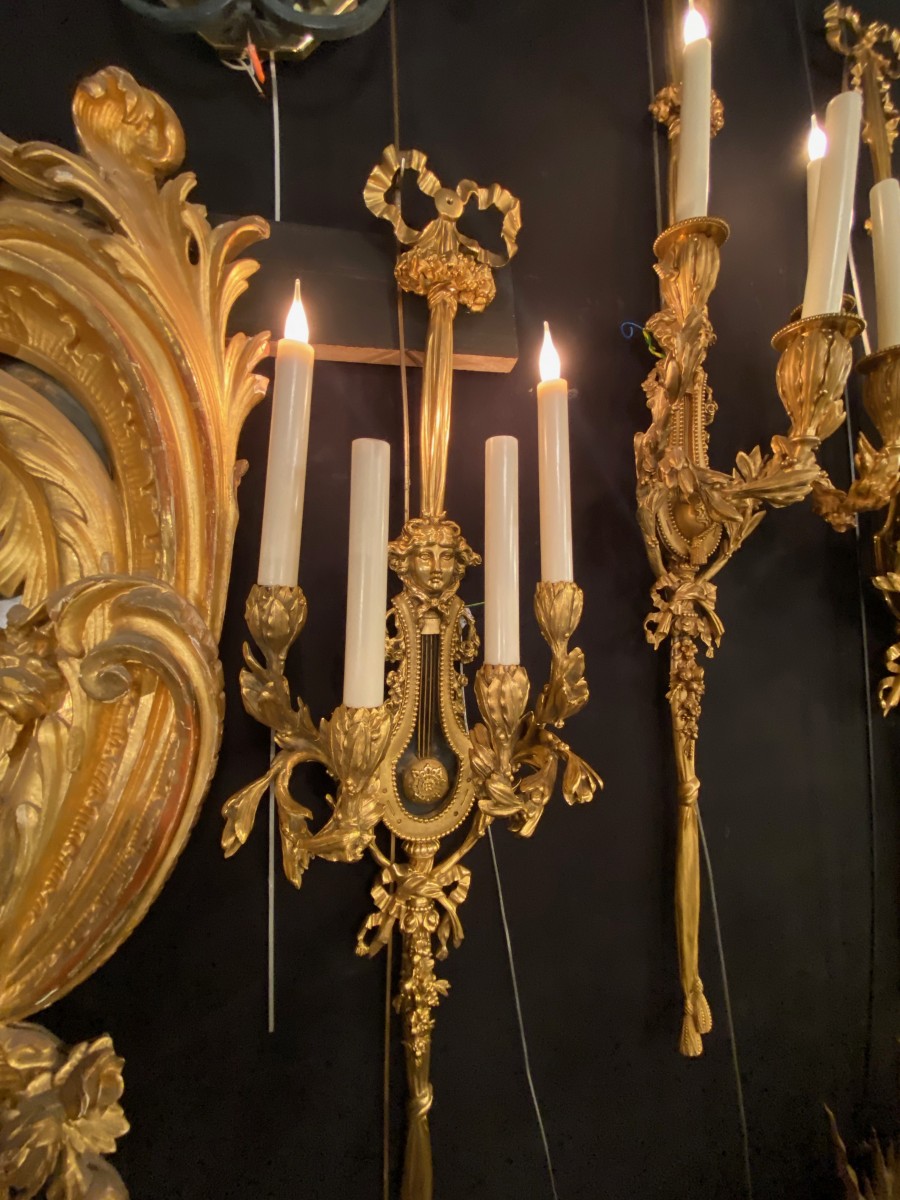 3 paires d’ appliques en bronze doré style Louis 16 et 4 bras