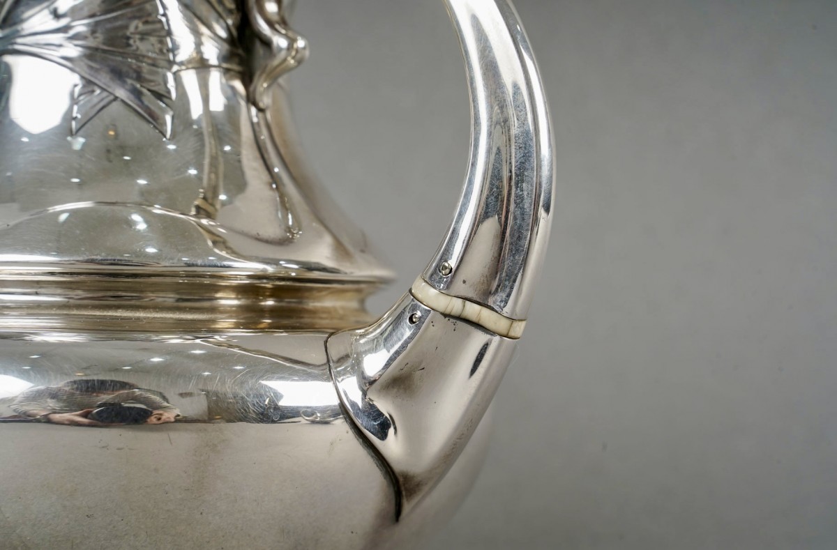 Service à Thé et à Café Art Nouveau "Papyrus" en argent massif créé en 1900. Modèle exposé à l'Exposition Universelle de 1900.