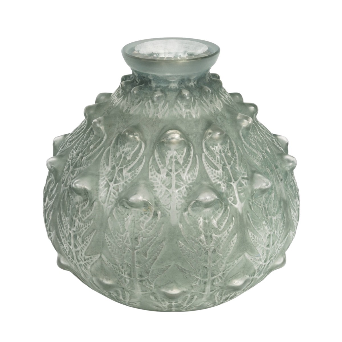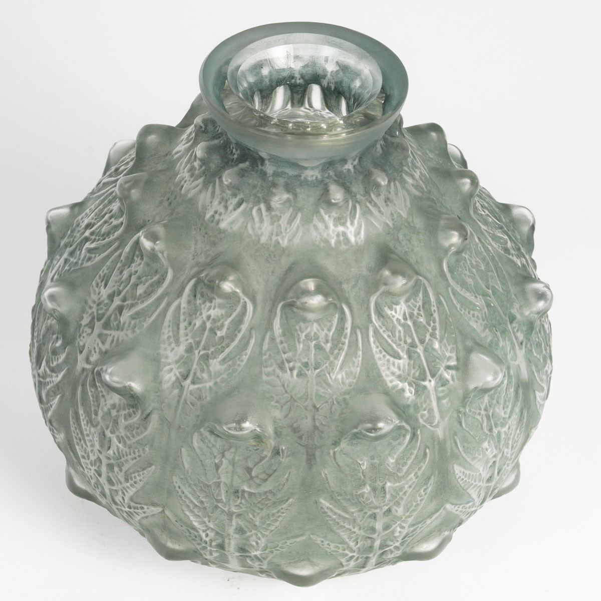Vase "Fougères" en verre blanc patiné vert de René Lalique créé en 1912.