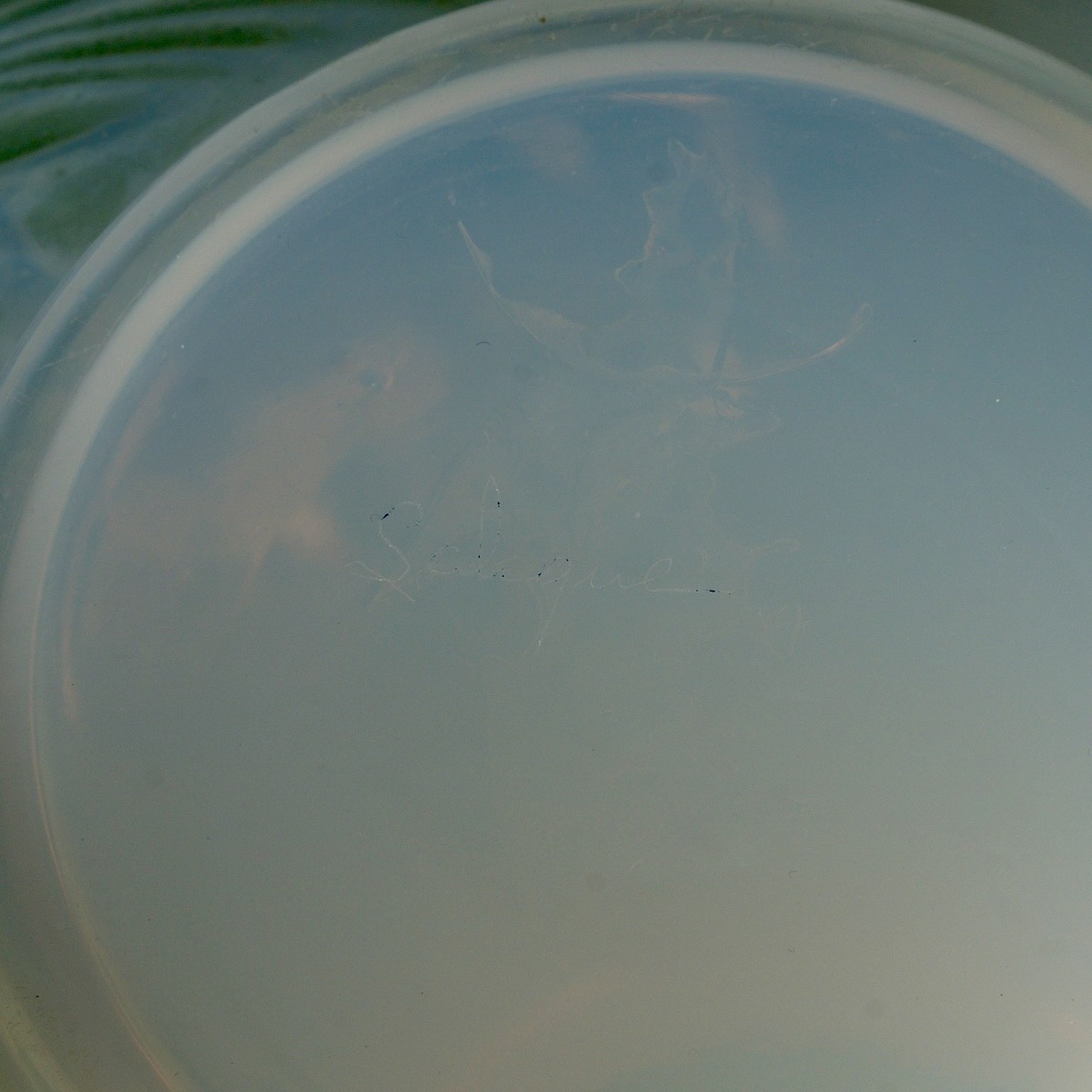 Signature moulée sur la tranche de la base et signature de contrôle sous la base.