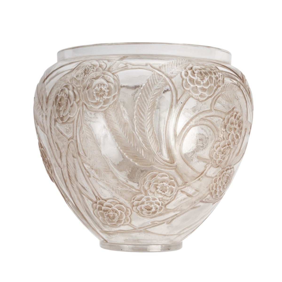 Vase "Néfliers" en verre blanc patiné sépia de René Lalique créé en 1923.