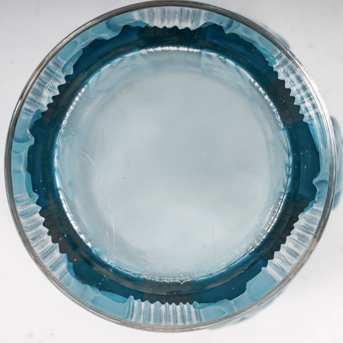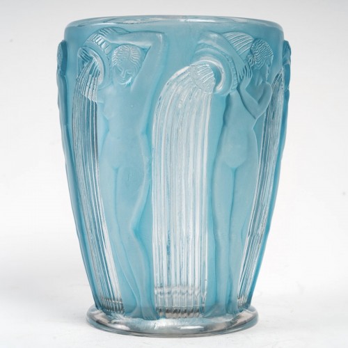 Vase "Danaïdes" en verre blanc patiné bleu de René Lalique créé en 1926.