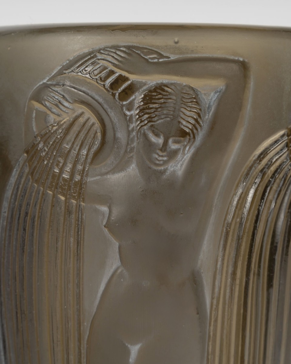 Vase" Danaïdes" en verre topaze fumé patiné blanc de René Lalique créé en 1926.