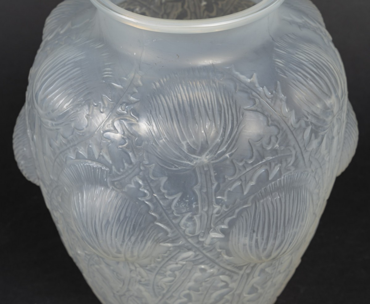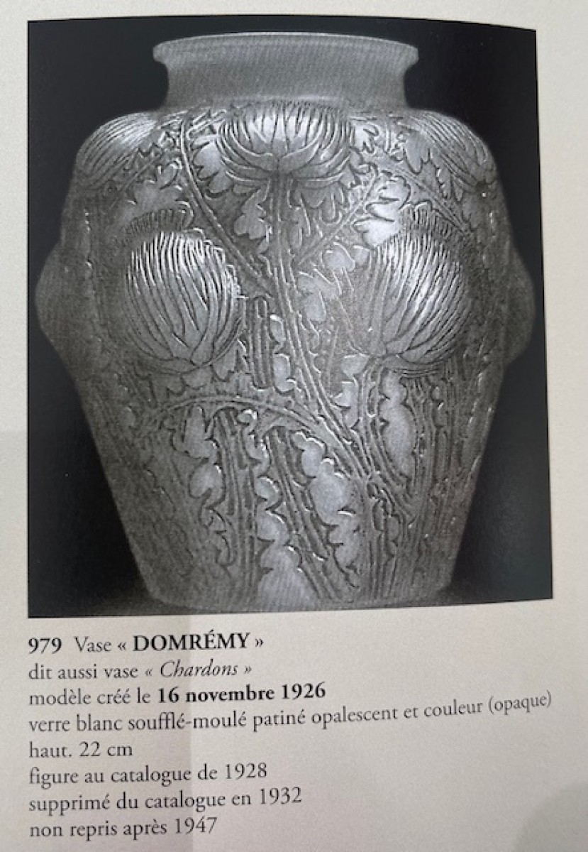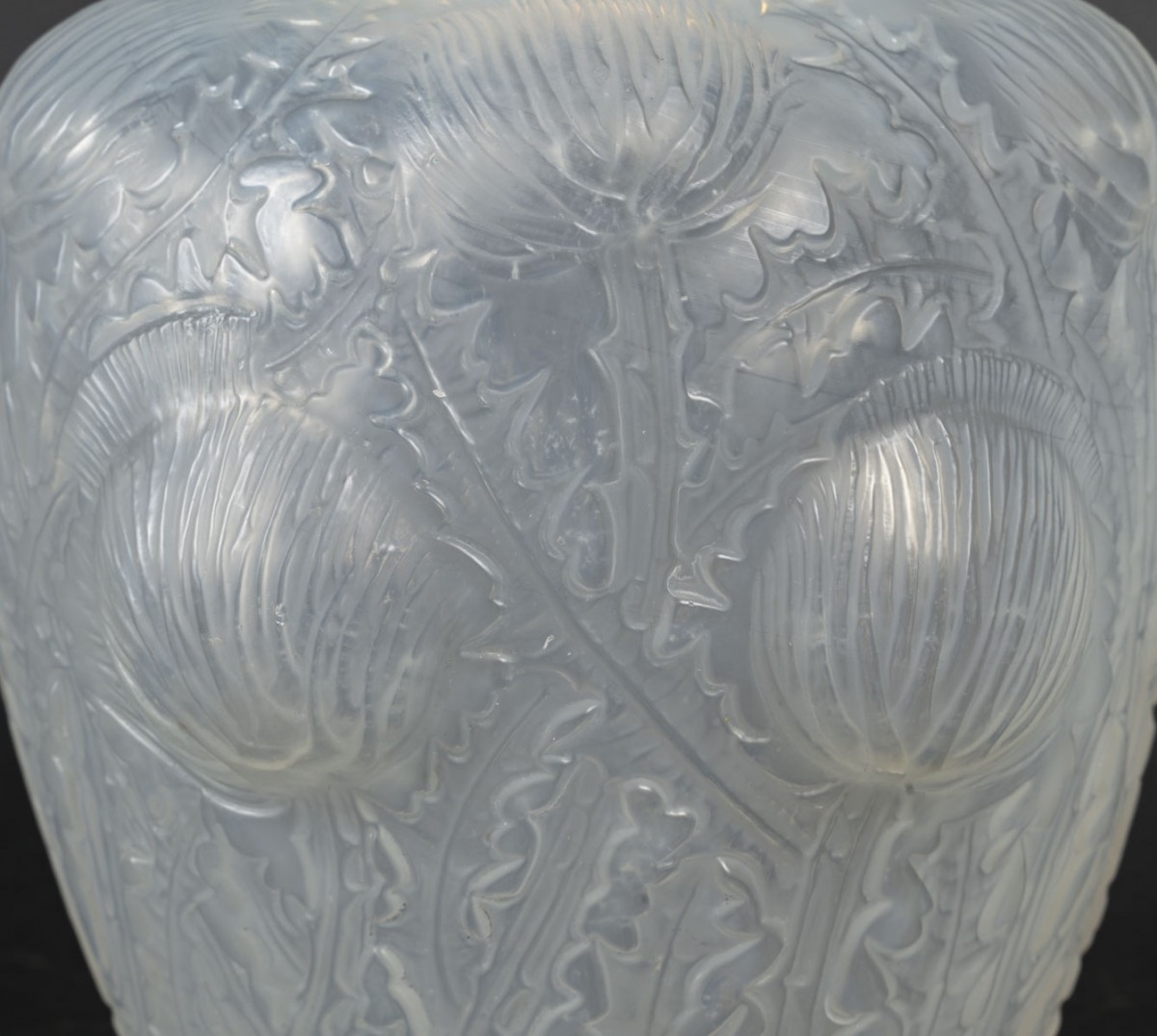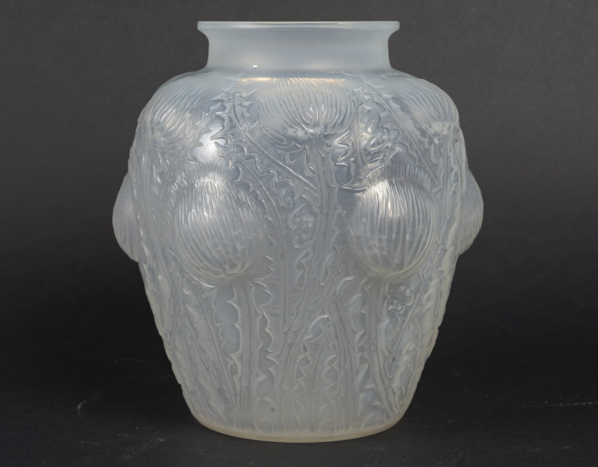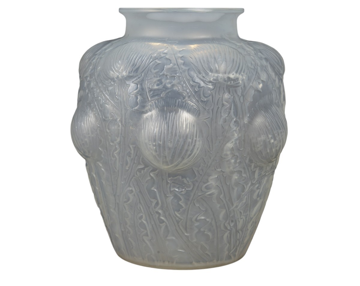 Vase “Domrémy” dit aussi « aux Chardons » créé le 16 novembre 1926 modèle en verre blanc soufflé, moulé, patiné opalescent et couleur (opaque).