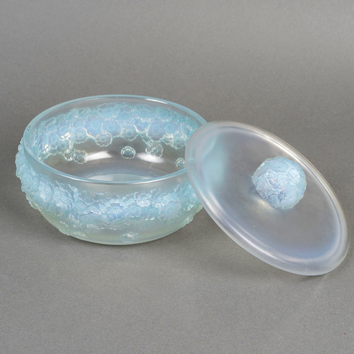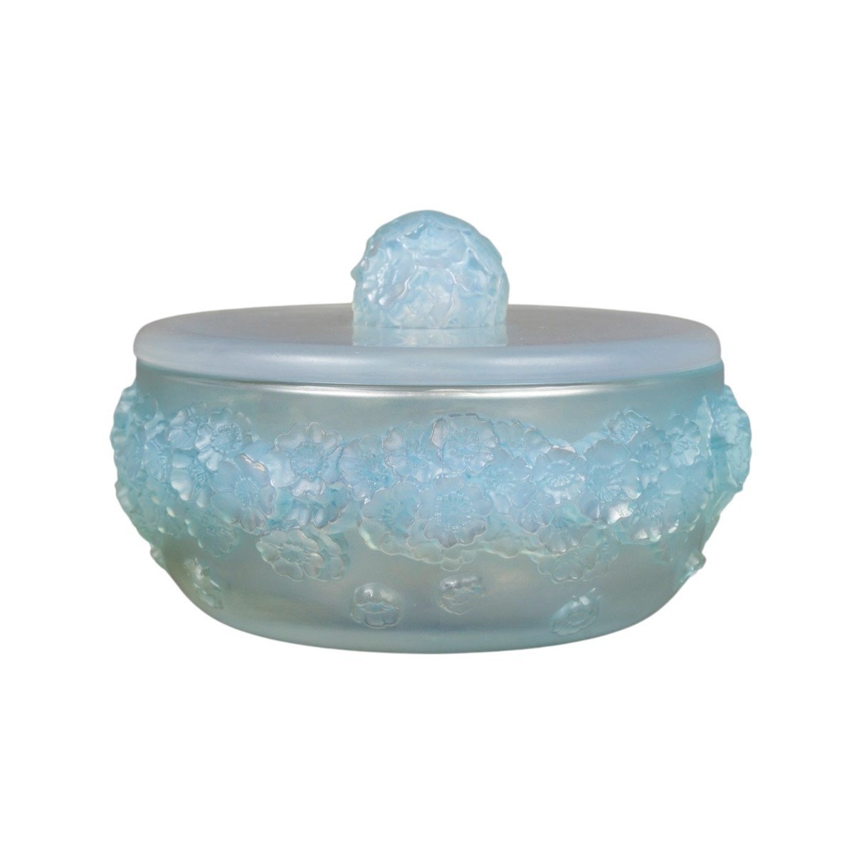 Boîte "Primevères" en verre opalescent patiné bleu de René Lalique créée en 1927.