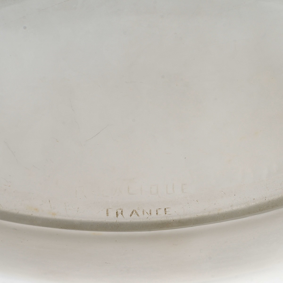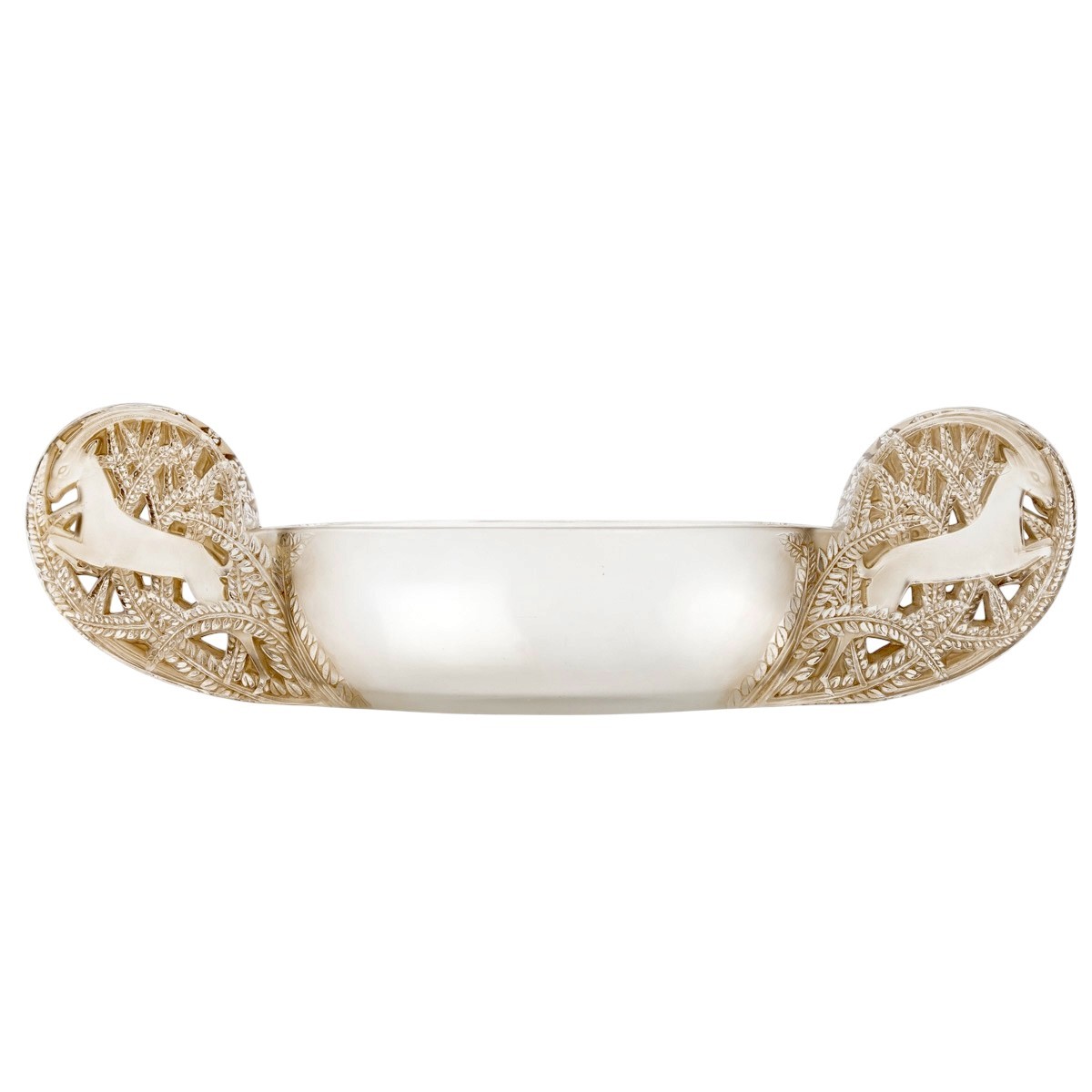 Jardinière Coupe "Saint Hubert" en verre blanc patiné sépia de René Lalique en 1927.