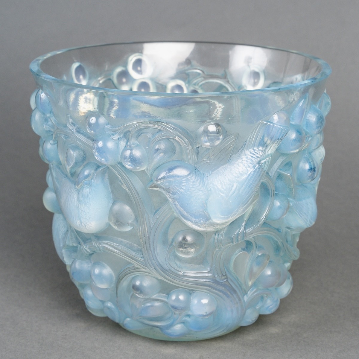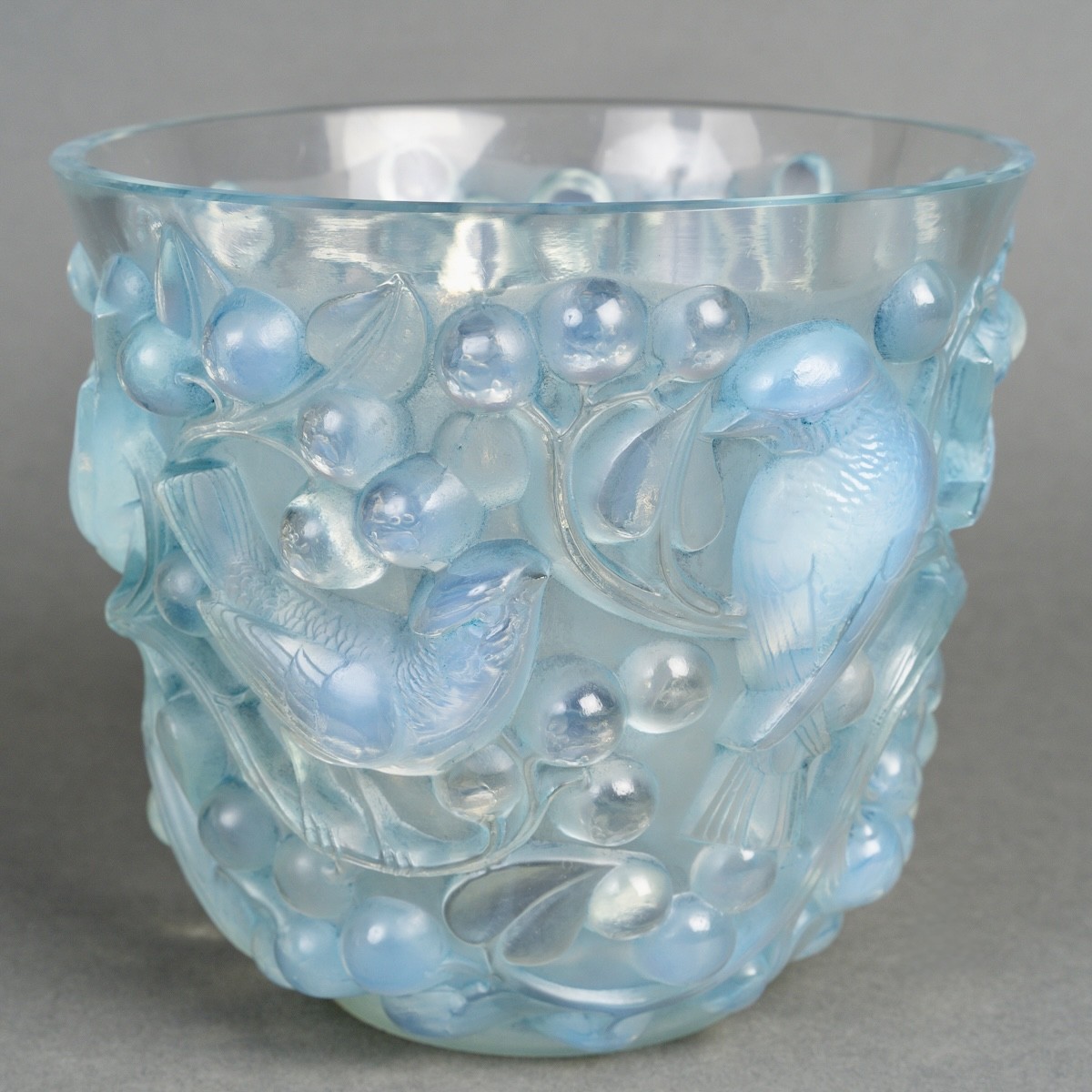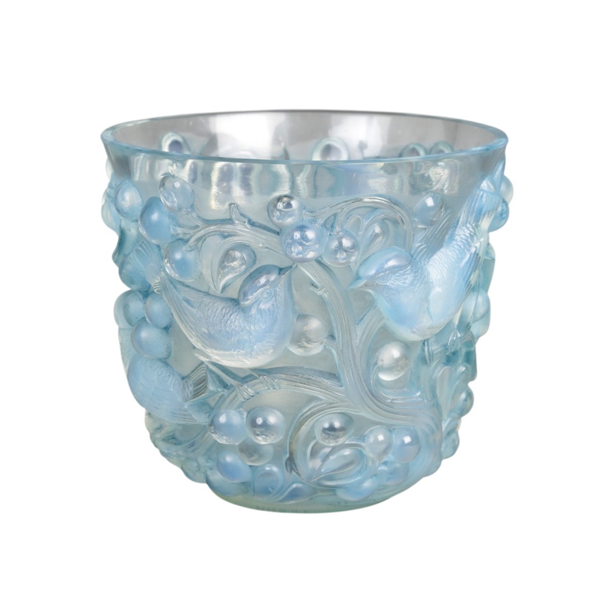 Vase "Avallon" en verre opalescent patiné bleu de René Lalique créé en 1927.