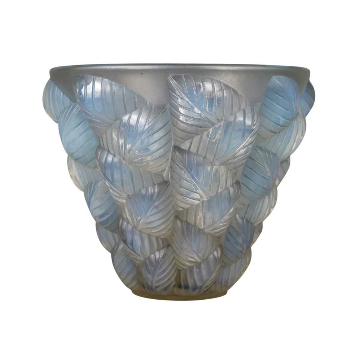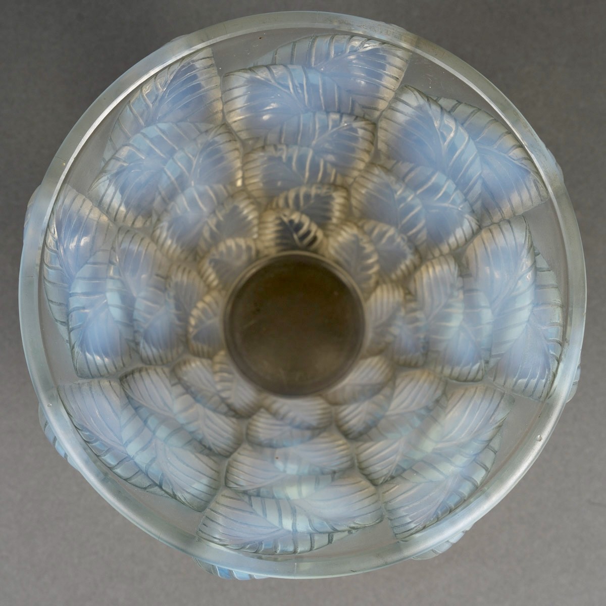 Vase "Moissac" en verre opalescent patiné bleu créé par René Lalique en 1927.