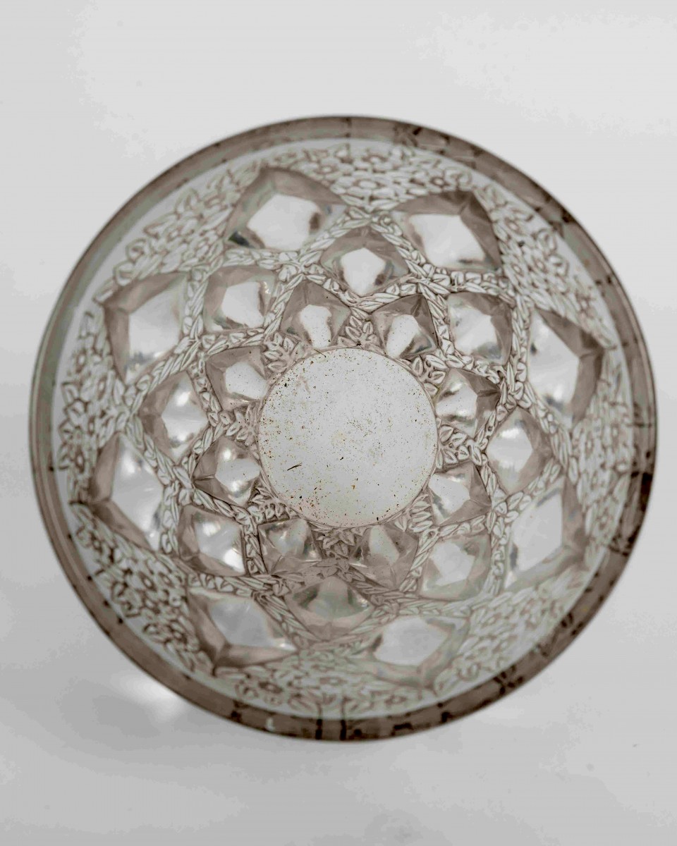 Vase "Rampillon" en verre blanc patiné gris créé par René Lalique en 1927.