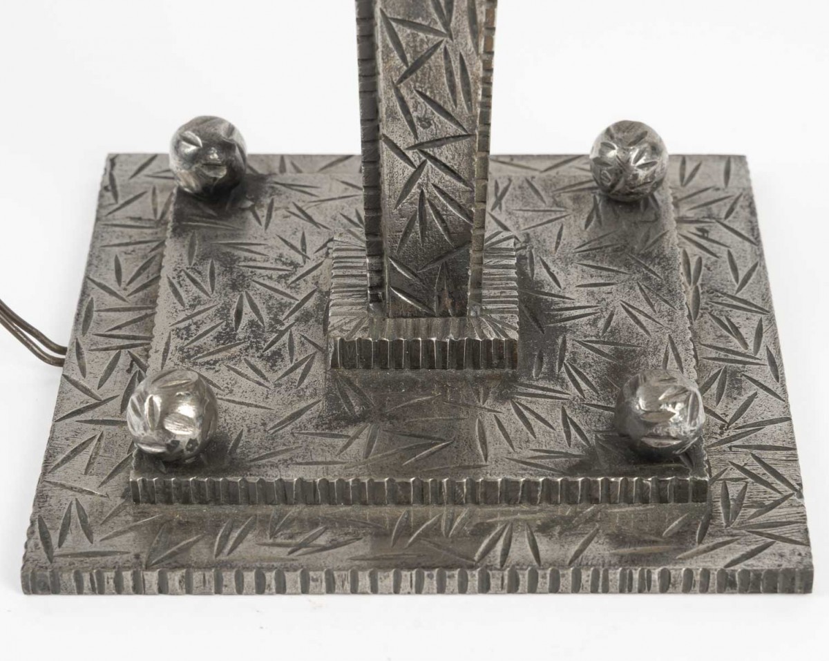 Signature gravée sur l'abat-jour en verre.