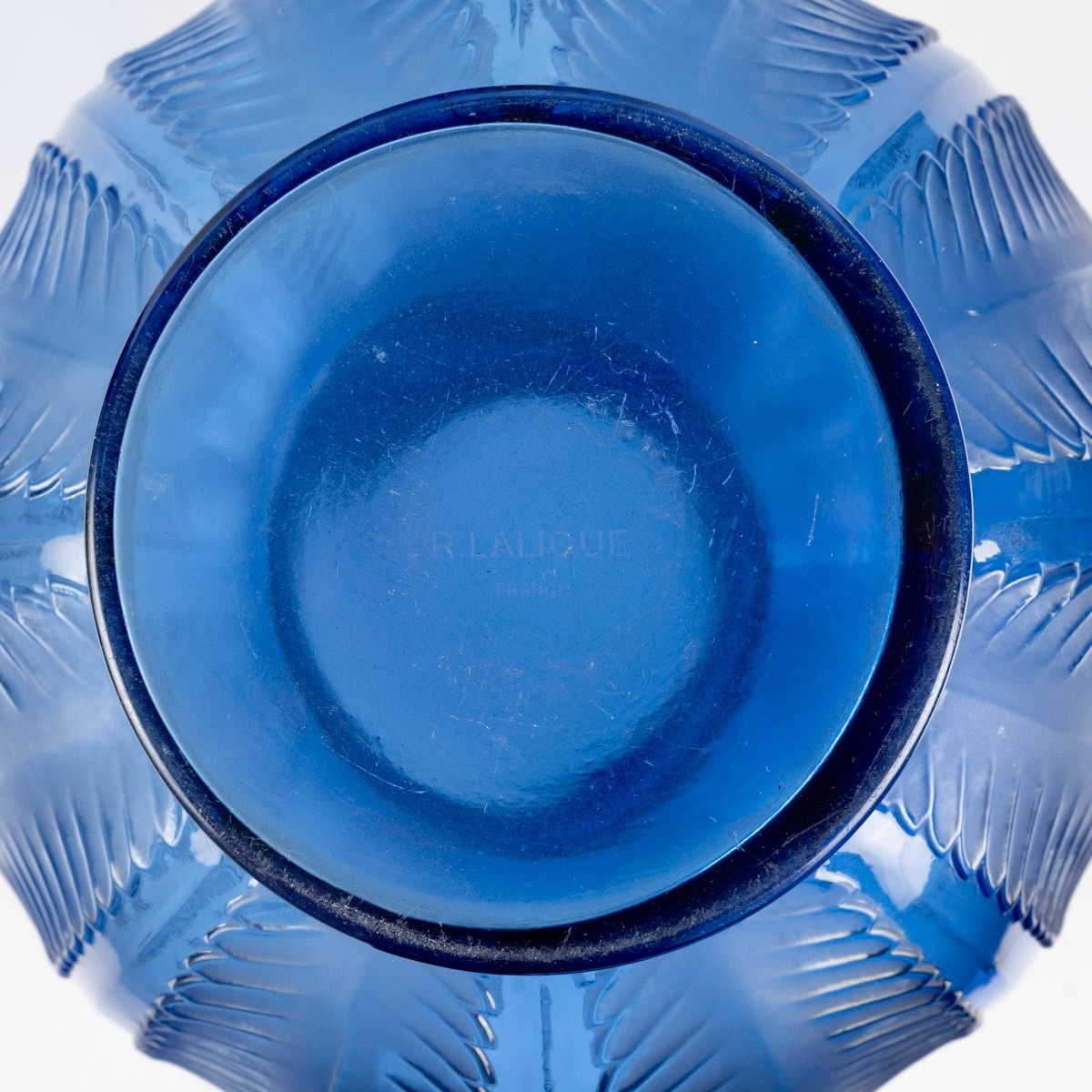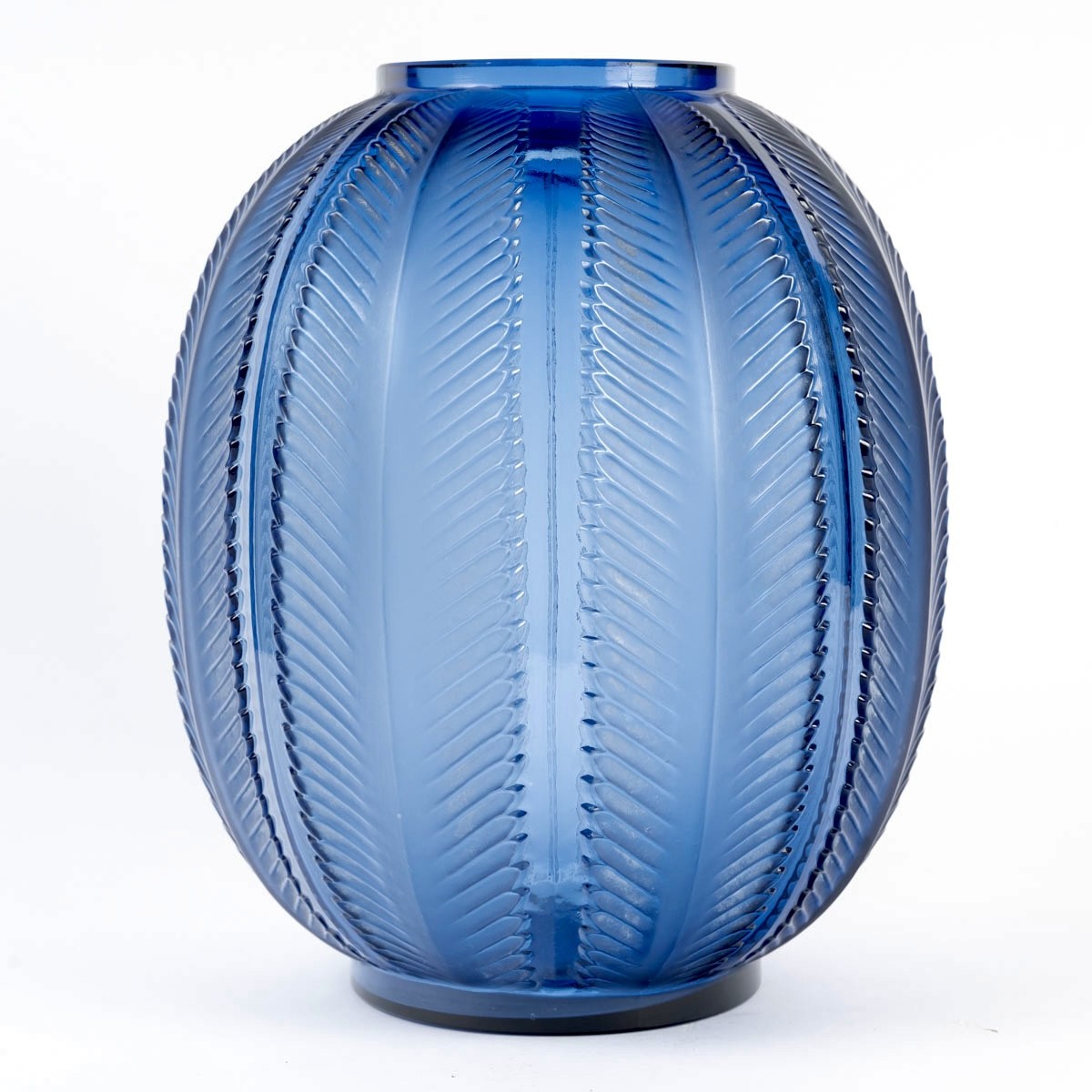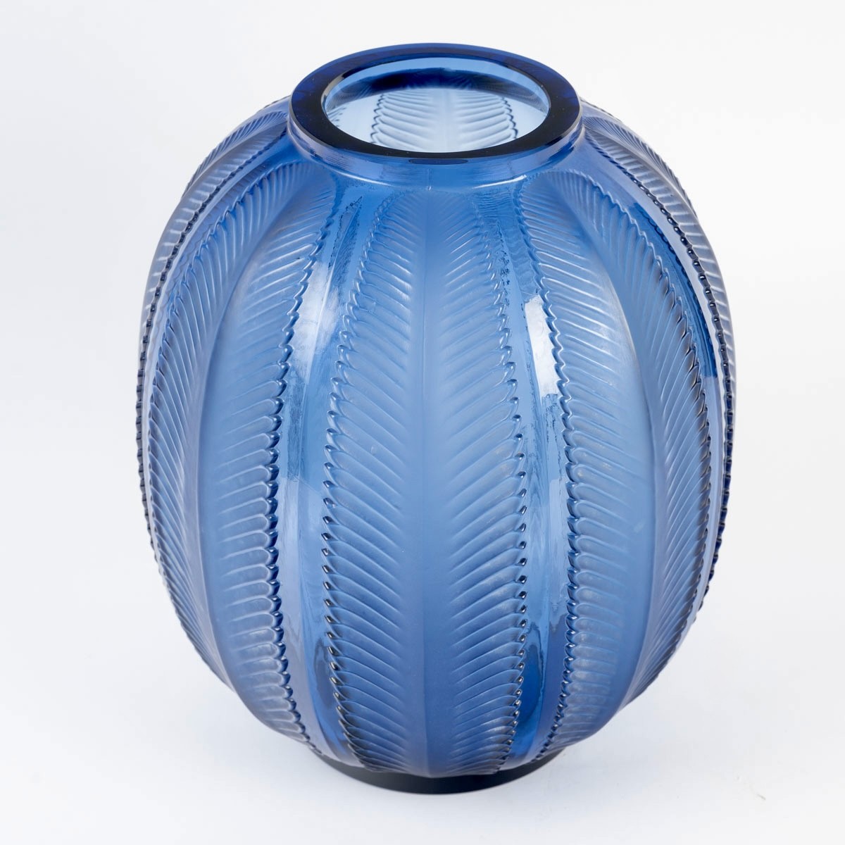 Vase "Biskra" en verre bleu saphir créé par René Lalique en 1932.