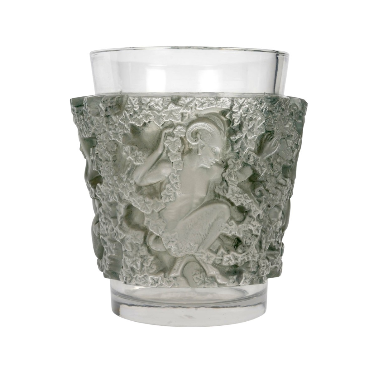 Vase « Bacchus » en verre blanc patiné bleu de René Lalique créé en 1938.