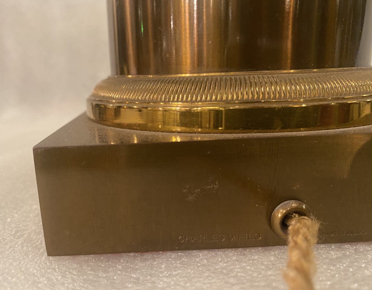 Paire de Lampes ou similaires Ananas signées Charles & Fils made in France, structure bronze, abats jour en laiton doré et poli sur les bords, bon état, Circa 1950/70