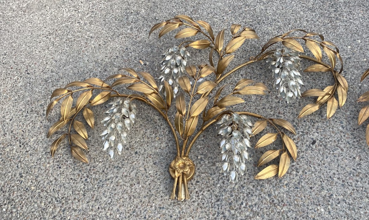Retrouver le mobilier ou les objets d''art similaires à « Paire d’ appliques aux 4 glycines circa 1970 » présenté par ABC Pascal, antiquaire à Saint-Ouen dans la catégorie Appliques Années 50-60, Luminaires.