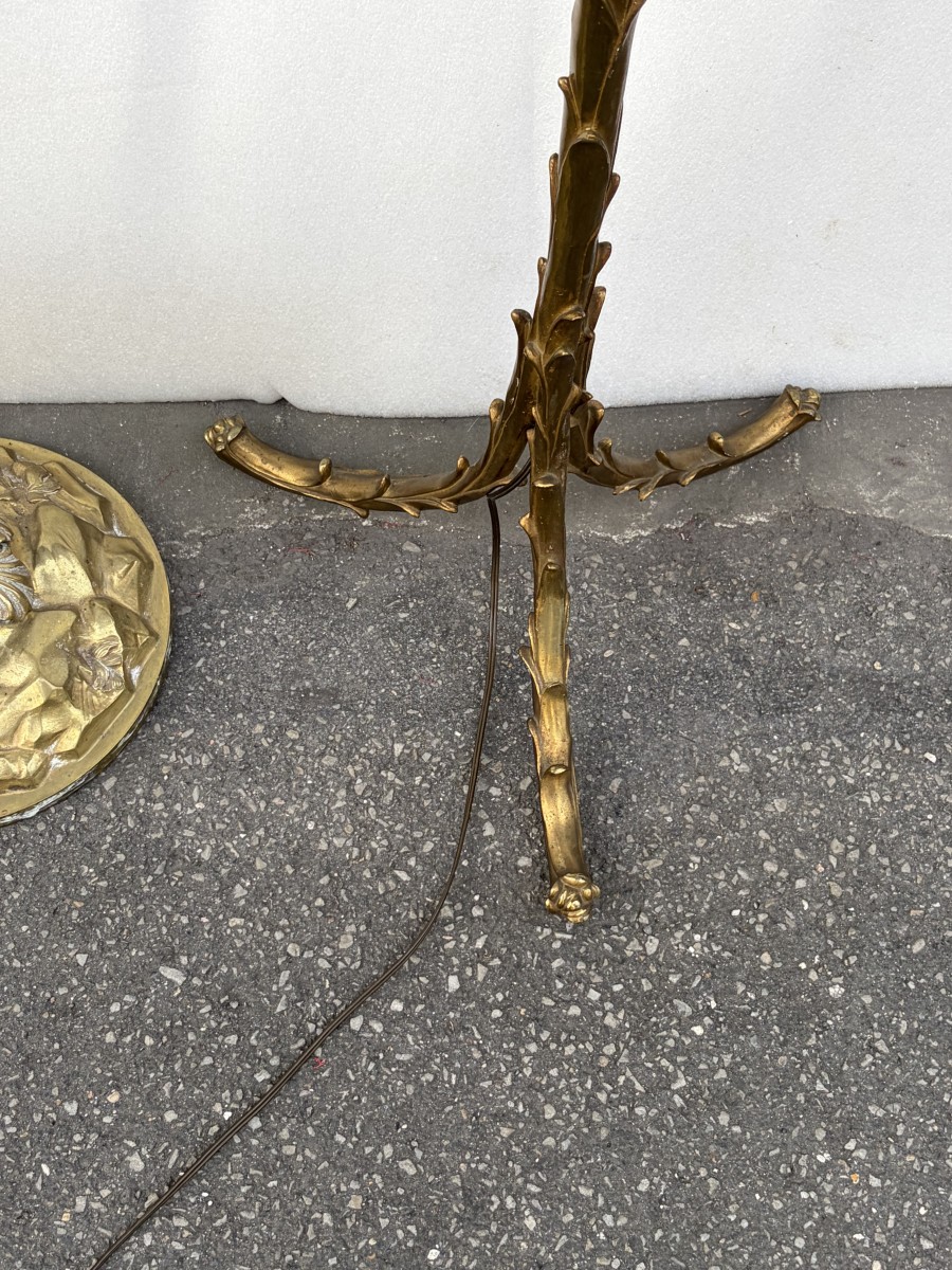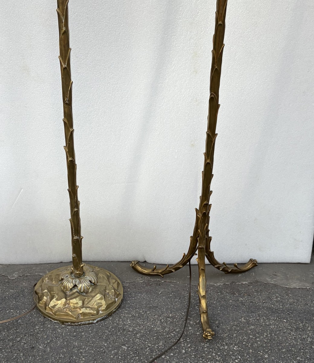 Retrouver le mobilier ou les objets d''art similaires à « Maison Bagues - Deux lampadaires en bronze décor Palmier » présenté par ABC Pascal, antiquaire à Saint-Ouen dans la catégorie Lampe Années 50-60, Luminaires.