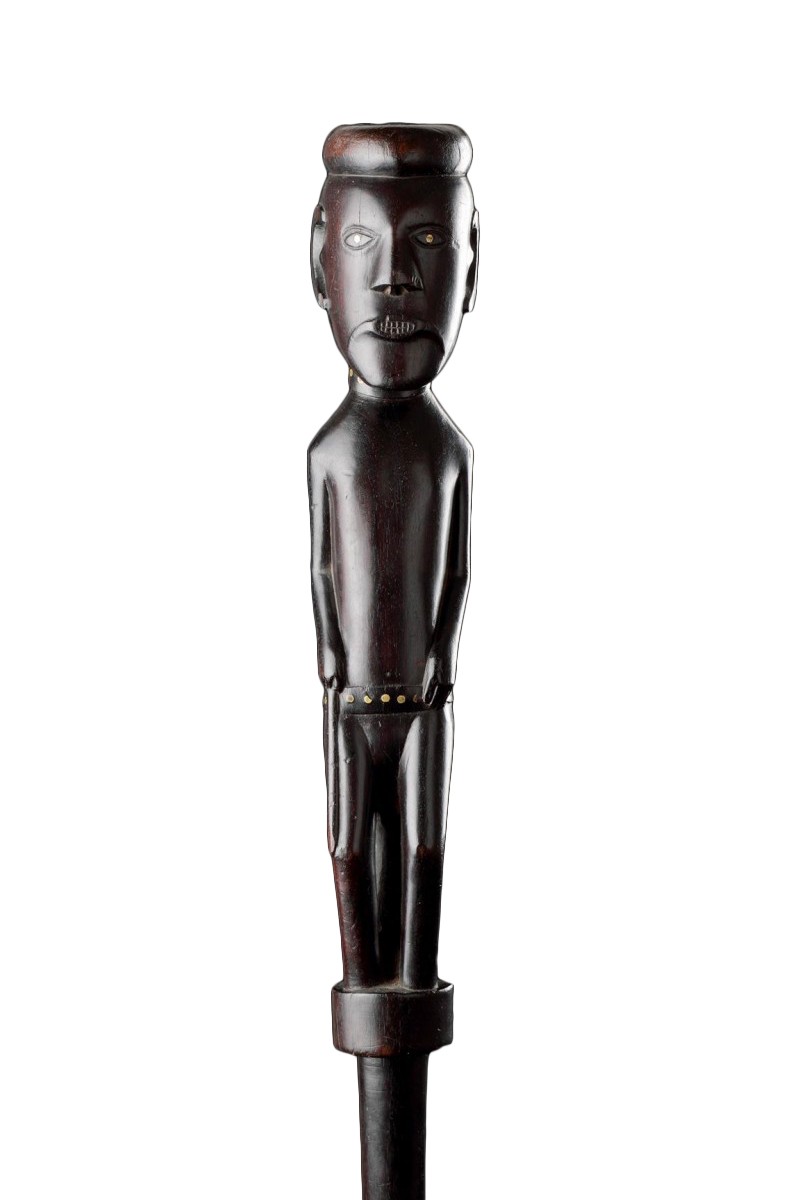Bâton de prestige en ébène sculpté représentant un aîné ou un dirigeant important portant un anneau de tête « Isicoco