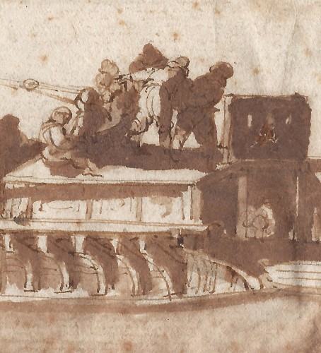 Cette petite mais vigoureuse esquisse fait partie d'un groupe de dessins représentant des navires et des scènes portuaires qui appartenait au milieu du XVIIIe siècle au sculpteur romain Bartolommeo Cavaceppi (vers 1716-1799), et qui a ...