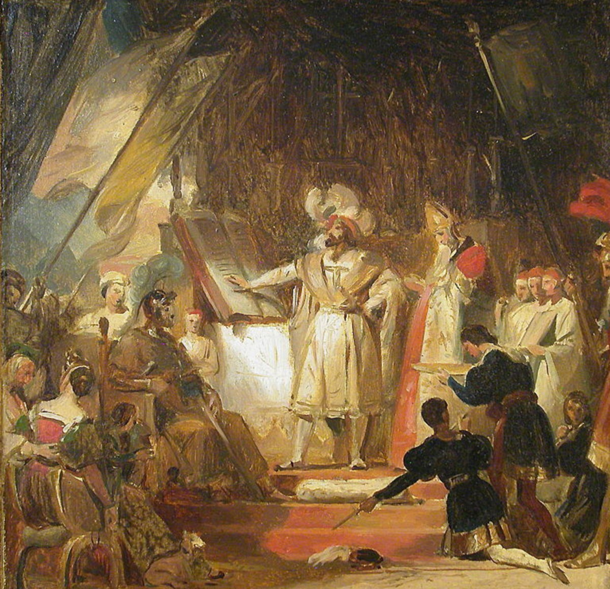 Alexandre-Évariste Fragonard, esquisse pour François Ier prêtant le serment des chevaliers, huile sur plâtre, H : 23 cm; L : 23 cm, musée du Louvre ; INV 20057.