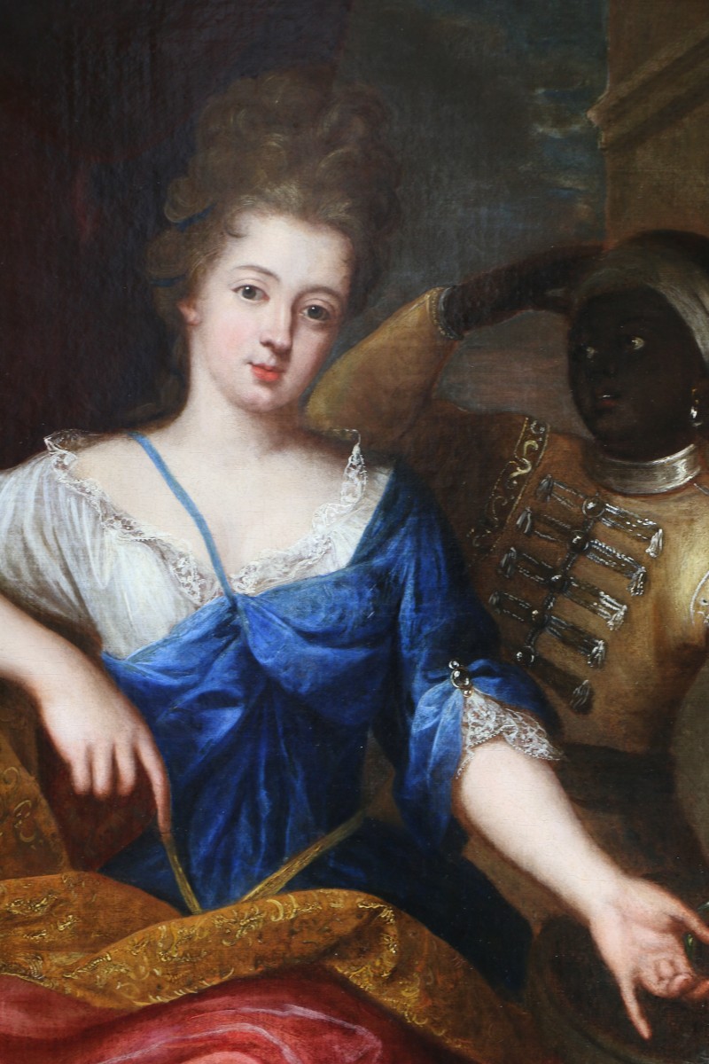 Le Louvre possède un portrait de la princesse également accompagnée d’un page, exécuté par un autre artiste (diverses attributions), vers 1715 également. (https://collections.louvre.fr/ark:/53355/cl010238274)