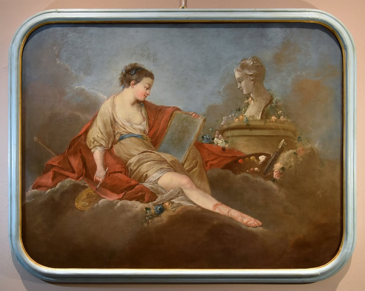 Retrouver le mobilier ou les objets d''art similaires à « Allégorie de la peinture, Pierre Charles Trémolières (Cholet, 1703 - Paris, 1739) » présenté par Antichità Castelbarco, antiquaire à Riva del Garda dans la catégorie Tableaux XVIIIe siècle Louis XIV, Tableaux et dessins.