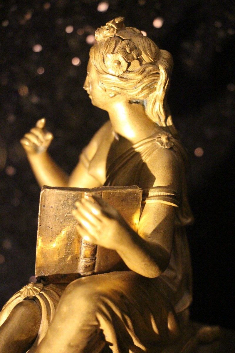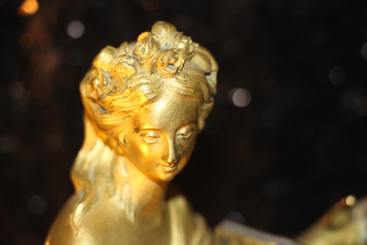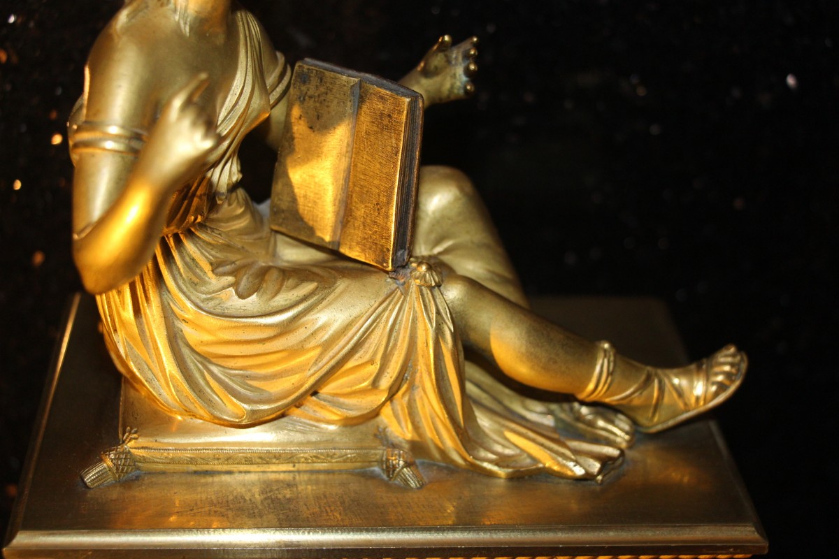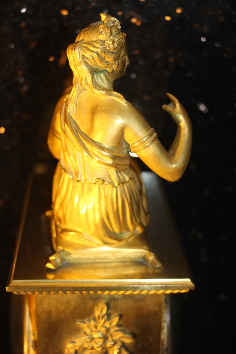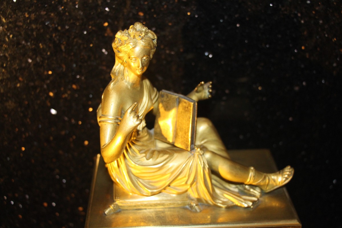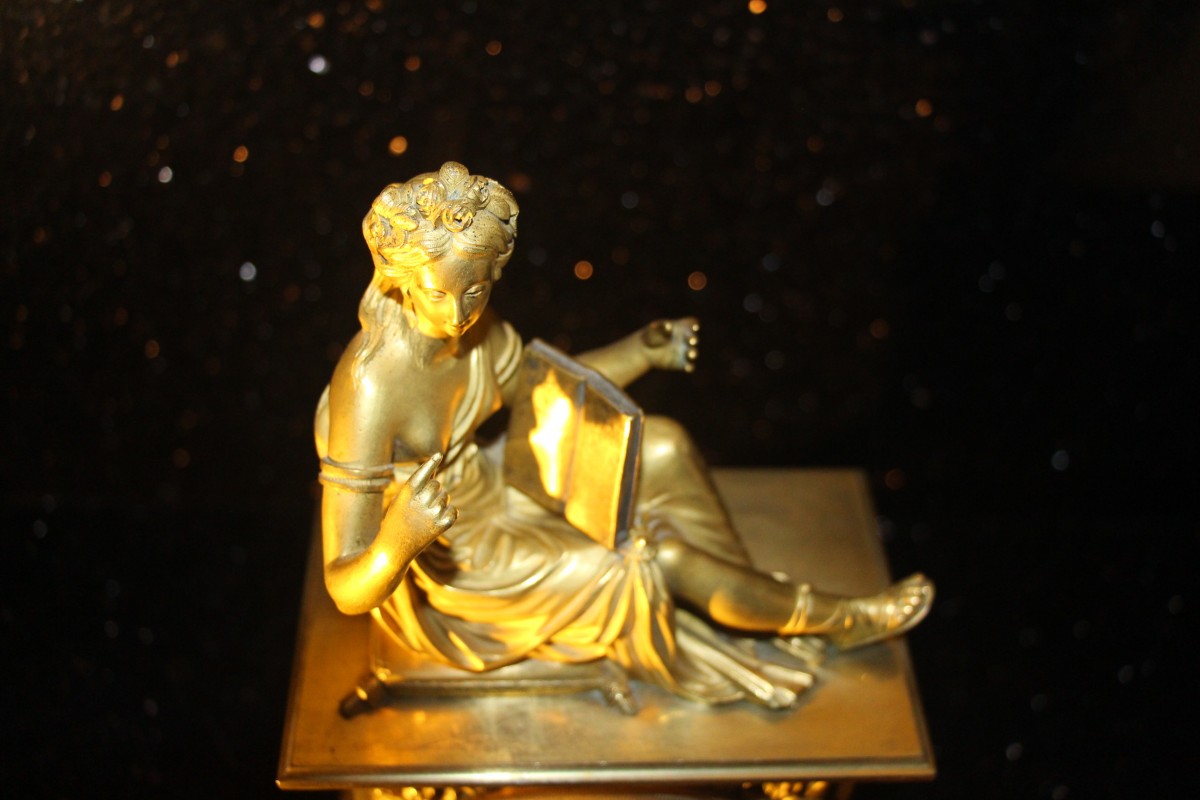 Retrouver le mobilier ou les objets d''art similaires à « Allégorie de la poésie, pendule en bronze doré d'époque Empire » présenté par Didascalies, antiquaire à Aix-en-Provence dans la catégorie Pendule Empire, Horlogerie.