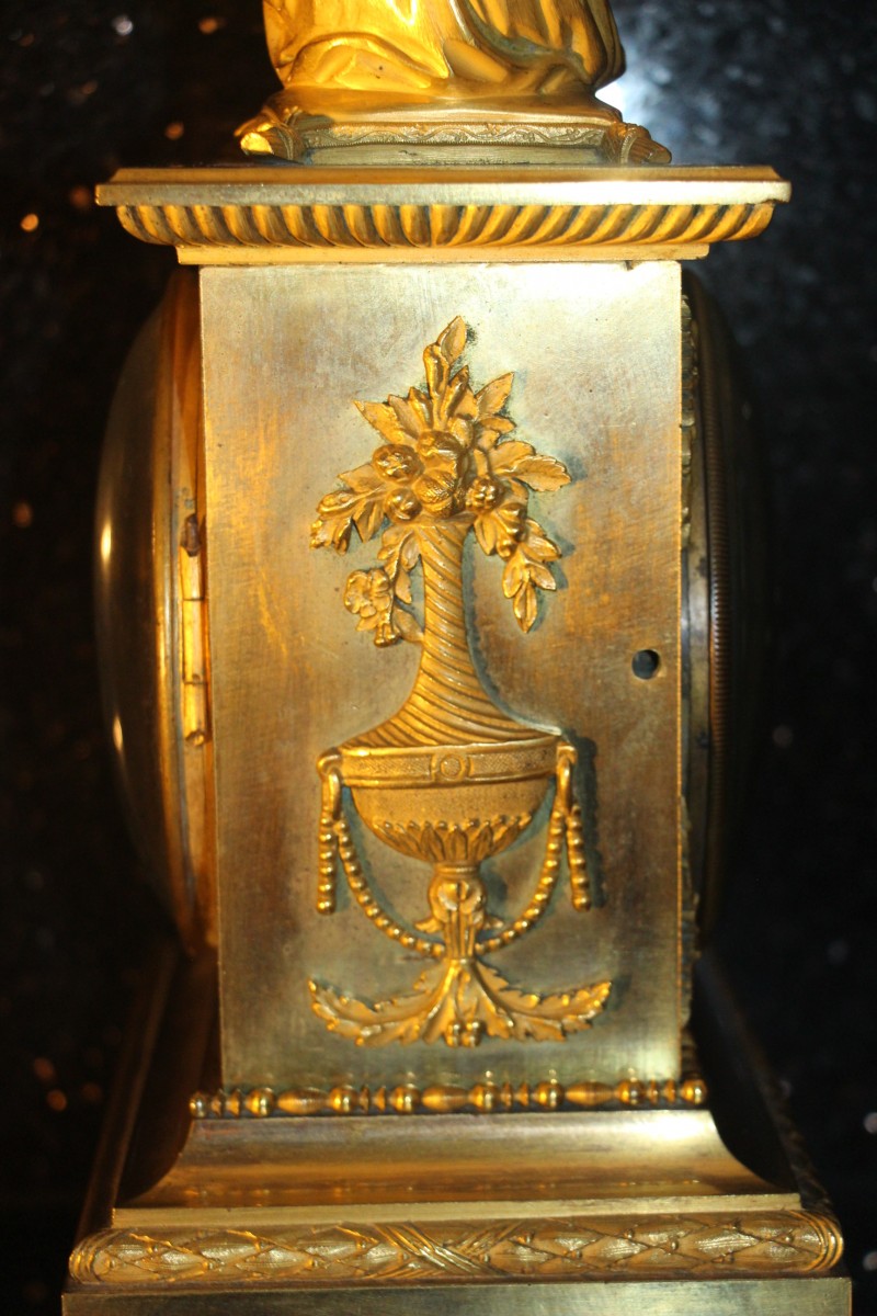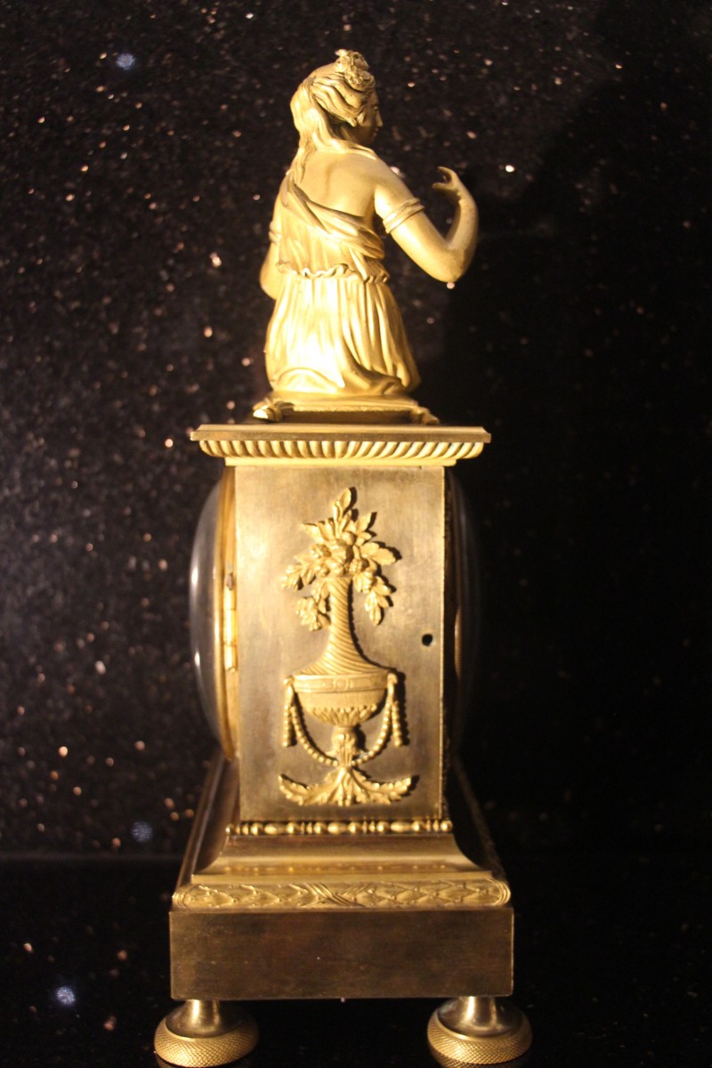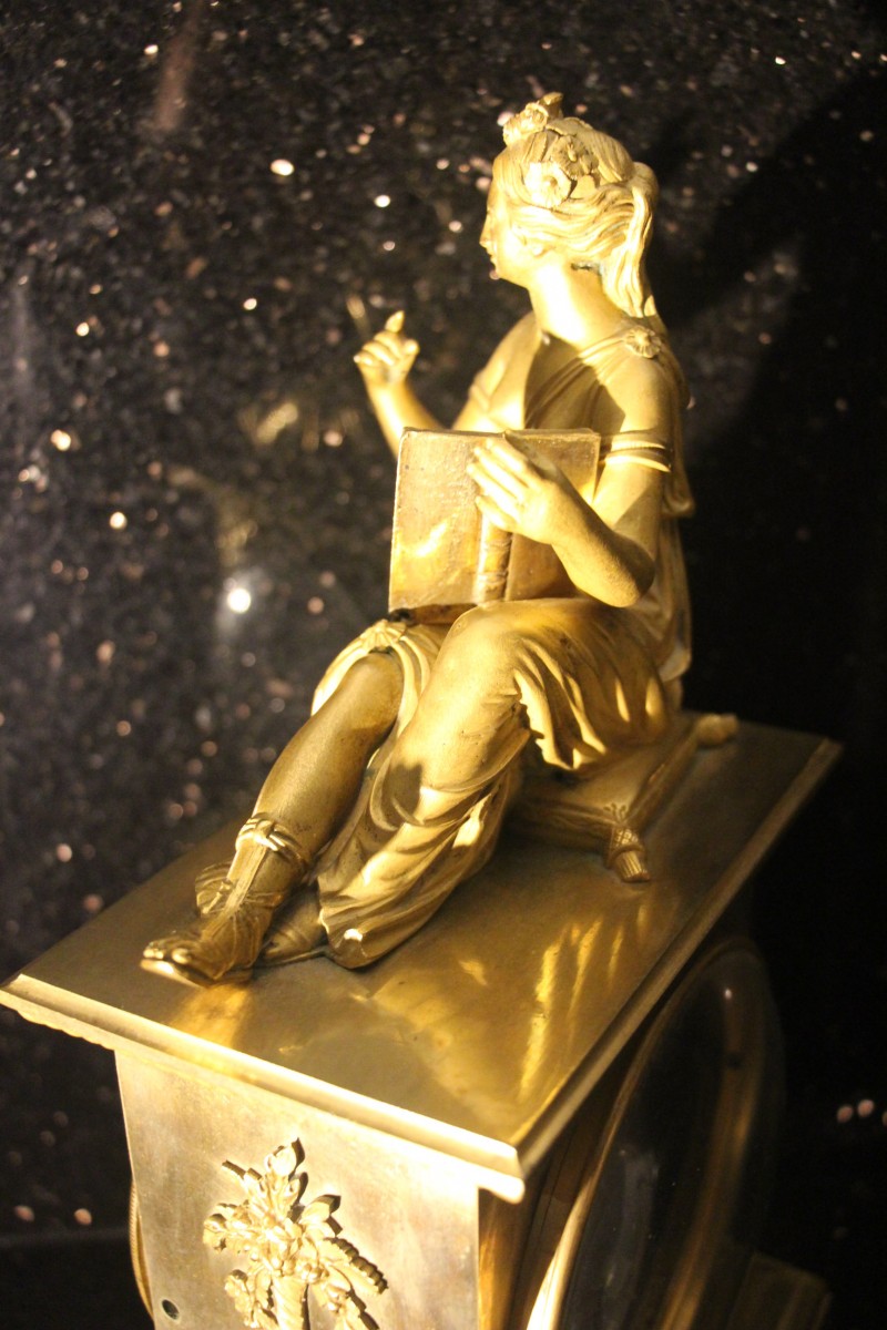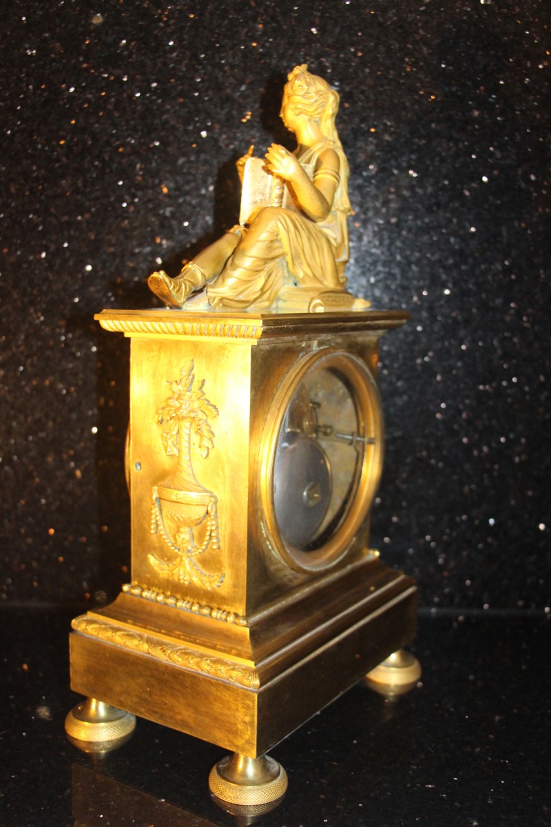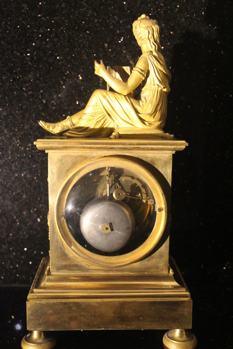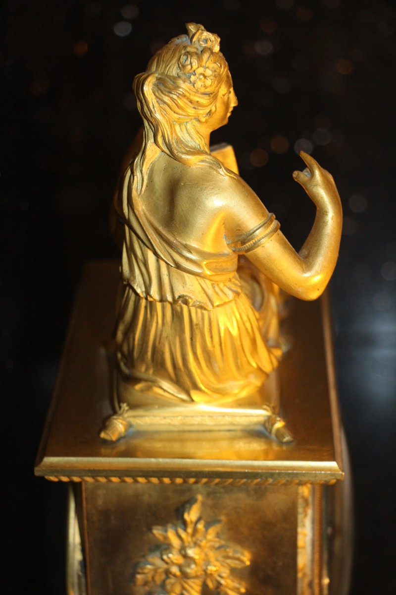 Allégorie de la poésie, pendule en bronze doré d'époque Empire, 1805, XIXe