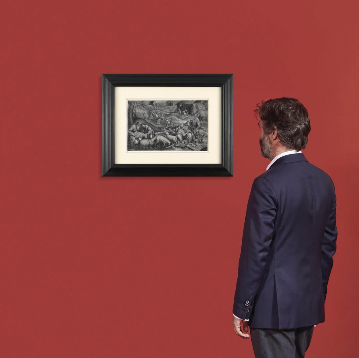 Le dessin est sobrement positionné dans une marie-louise biseautée sous verre anti-UV et anti-reflet, le tout dans un cadre profilé en bois noirci.
