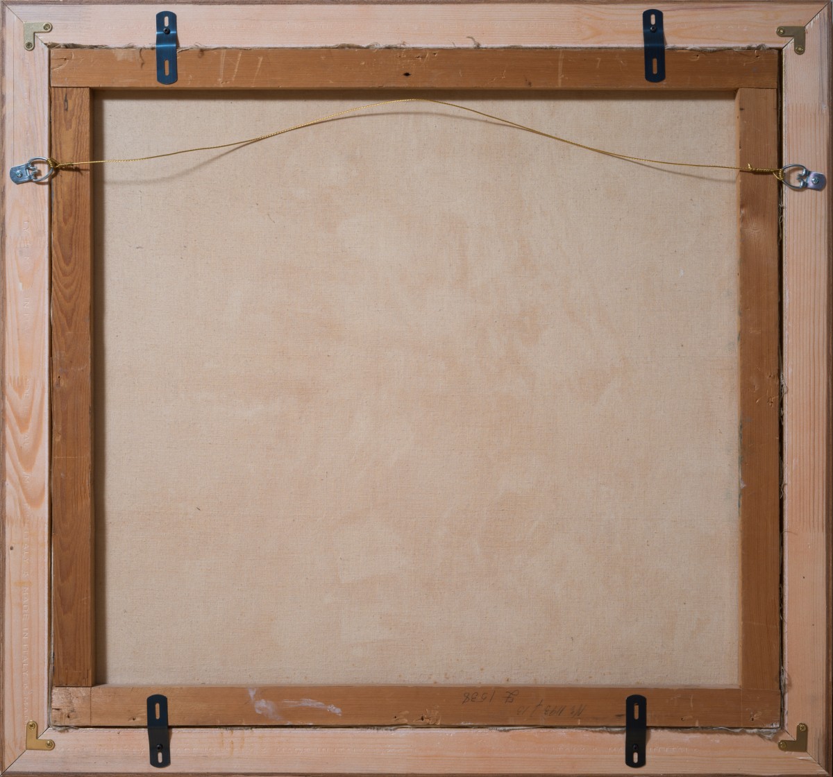 La peinture est en bon état. La surface présente une couche picturale stable avec des couleurs vives et claires. L’œuvre est présentée dans un cadre doré récent.