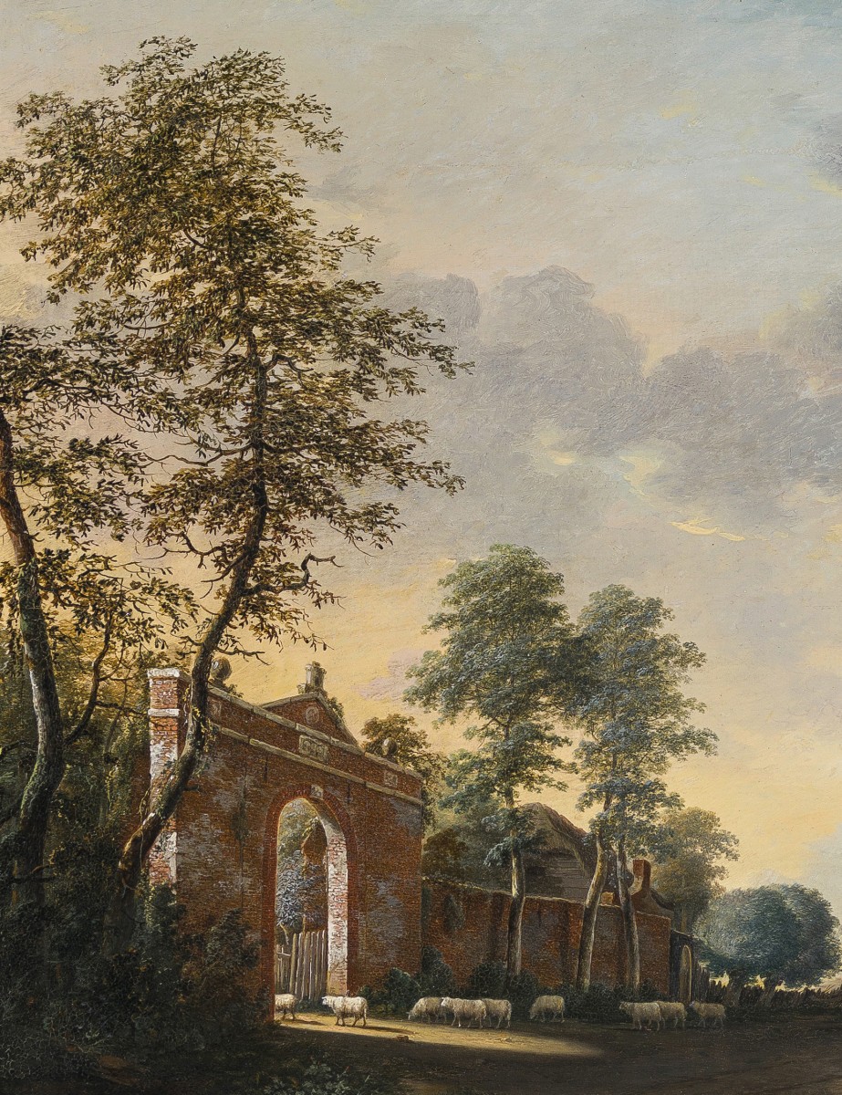 Notre paysage de Vermeulen compte parmi les œuvres les plus raffinées et sophistiquées de l’artiste. L’entrée en briques à fronton semble d’un réalisme saisissant ; il s’agit peut-être du portail d’une maison de campagne. Le tableau pourrait donc avoir été commandé spécialement par son propriétaire. Il peut par exemple être comparé à un paysage montagneux de la collection du musée de Dordrecht.3 D'autres tableaux de Vermeulen sont conservés au Rijksmuseum d'Amsterdam, à la Staatliche Kunsthalle de Karlsruhe et à la National Gallery de Londres.