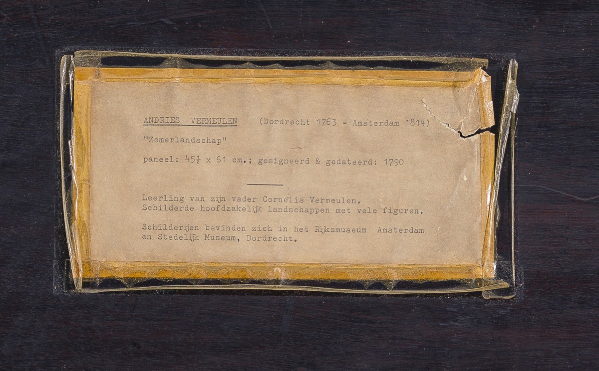 1. Pour Andries Vermeulen, voir J. Erkelens, « Dordtse schilders 6 : Cornelis Vermeulen (1732-1813) en Andries Vermeulen (1763-1814) », Kwartaal & Teken 16 (1990), no. 1, p. 14-17.