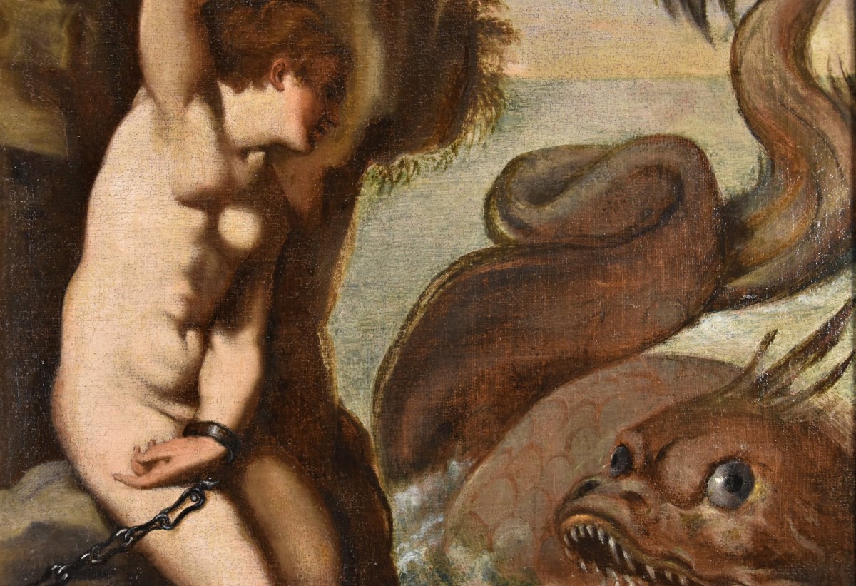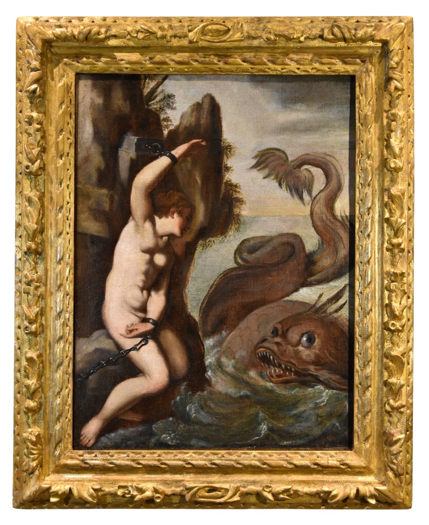 Retrouver le mobilier ou les objets d''art similaires à « Andromède et le monstre marin, école italienne du 17e siècle » présenté par Antichità Castelbarco, antiquaire à Riva del Garda dans la catégorie Tableaux XVIIe siècle Louis XIII, Tableaux et dessins.