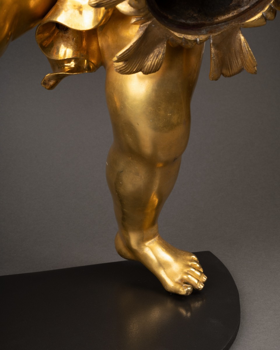Très belle fonte au sable en neuf parties assemblées ; très grande qualité de ciselure sur l’ensemble de la chevelure et des ailes et dorure au mercure très fraiche à double ...