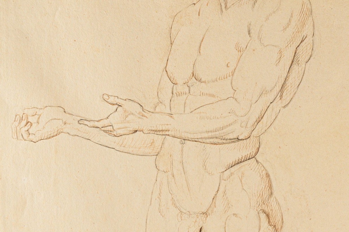 Retrouver le mobilier ou les objets d''art similaires à « Antonio Canova – Étude monumentale de nu masculin, vers 1790 » présenté par Poncelin de Raucourt Fine Arts, antiquaire à Paris dans la catégorie Dessin, Aquarelle & Pastel Louis XVI, Tableaux et dessins.