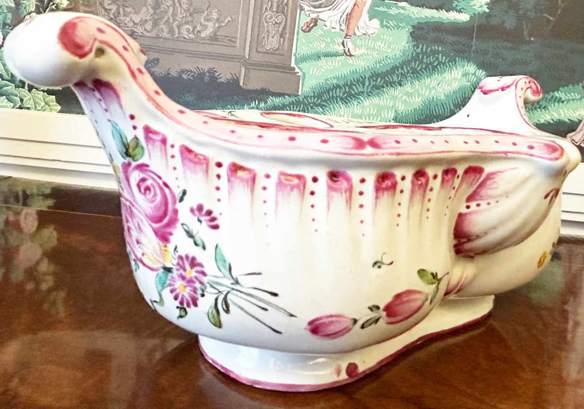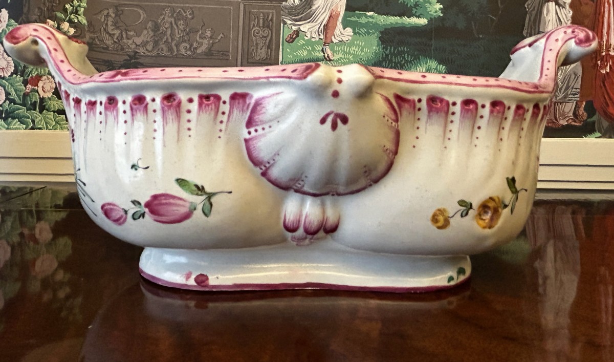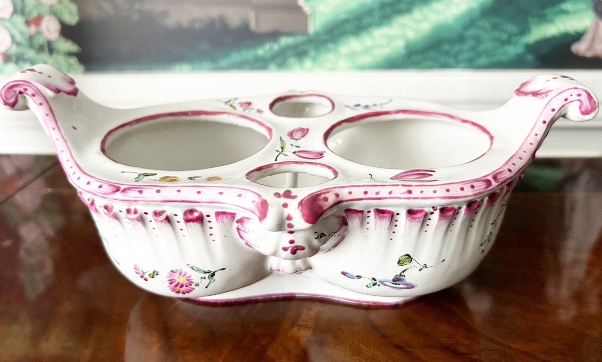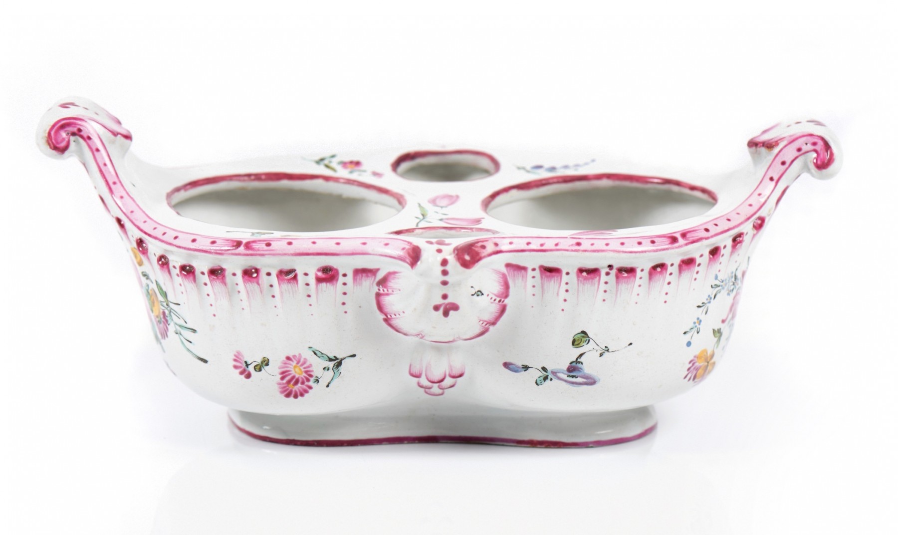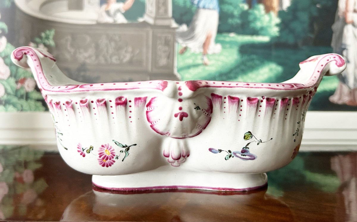 Par sa forme navette rocaille, sa fonction de porte huilier, la qualité de son décor et la lisibilité de ses marques, notre pièce s’inscrit dans ce corpus muséal tout en offrant au collectionneur une combinaison rare d’élégance formelle et de richesse picturale.