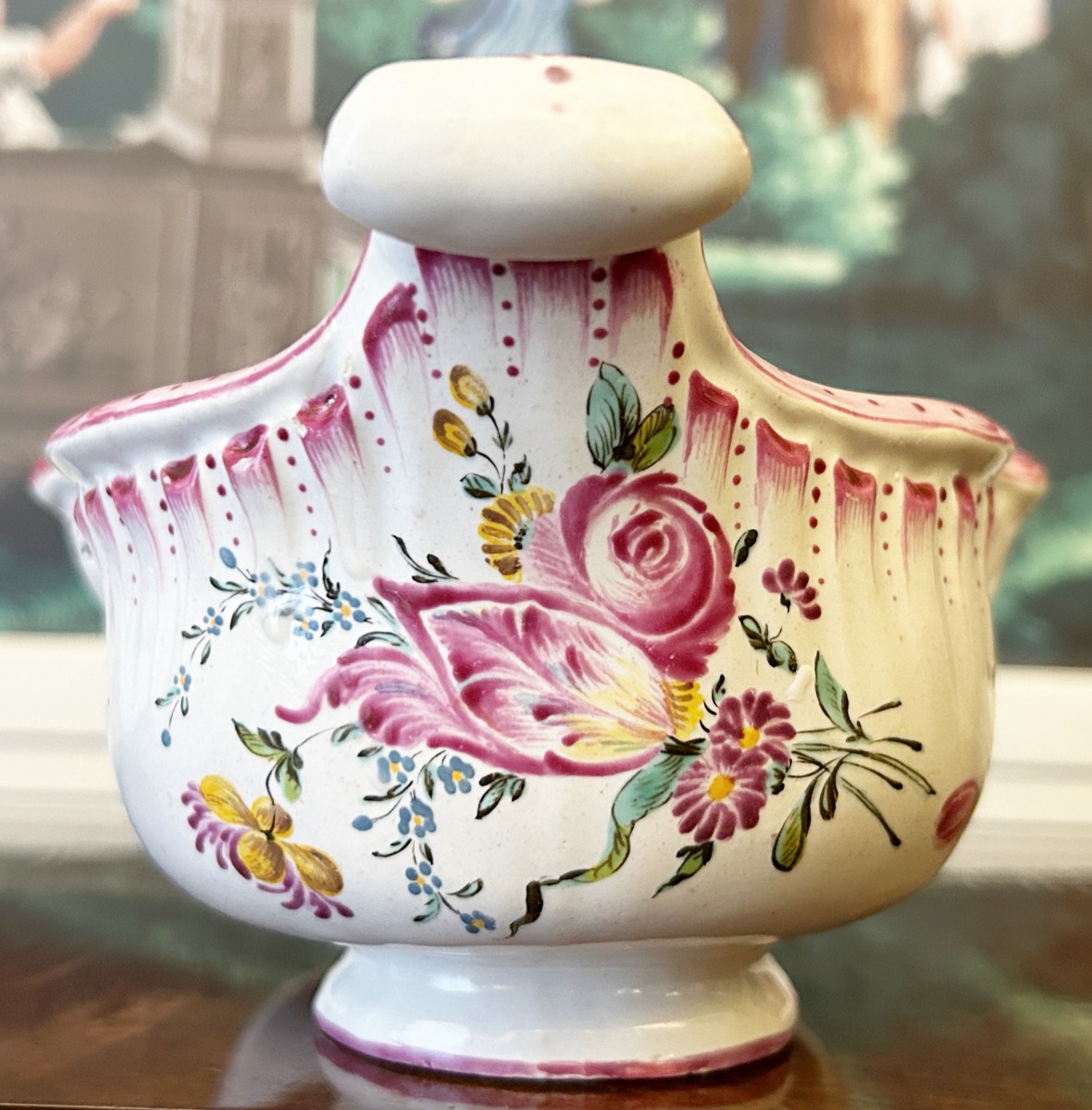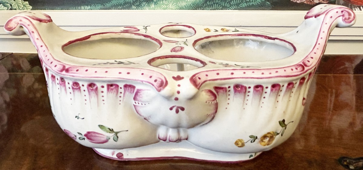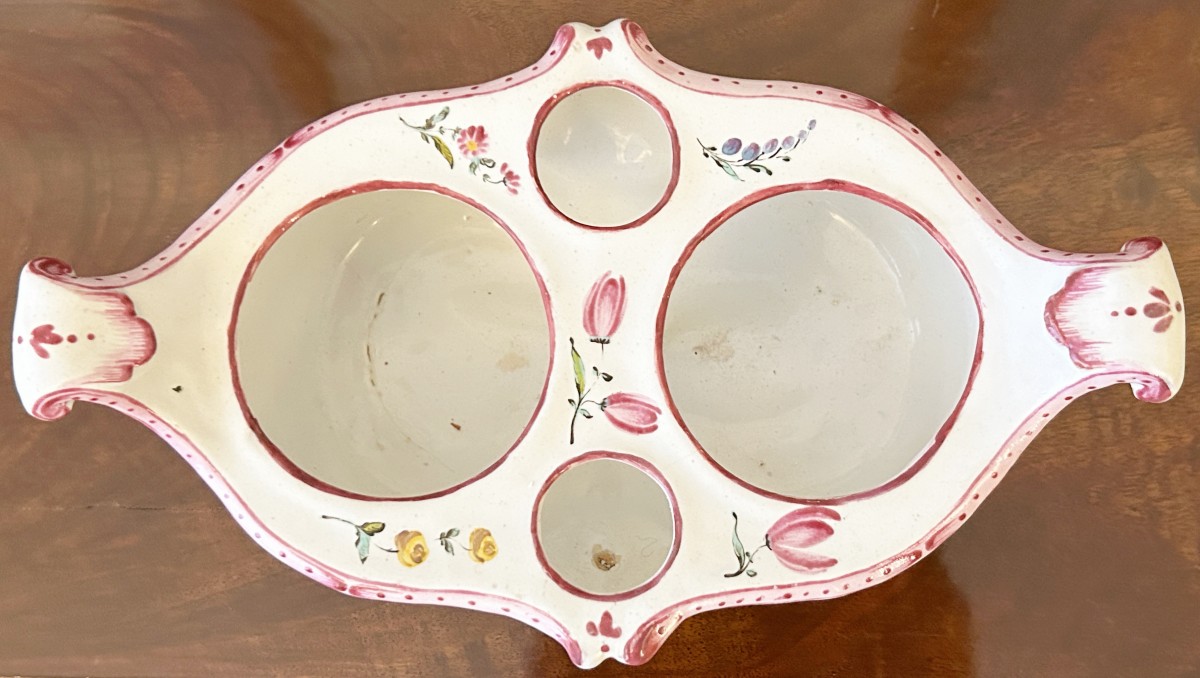 Ces rapprochements confirment le rang de notre porte-huilier au sein des plus belles productions d’APREY et son intérêt tant pour l’étude de la faïence que pour une collection exigeante.