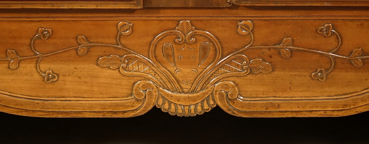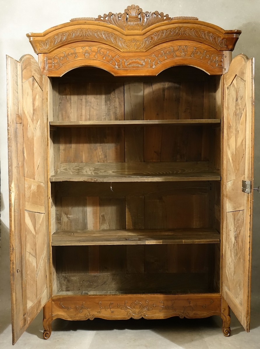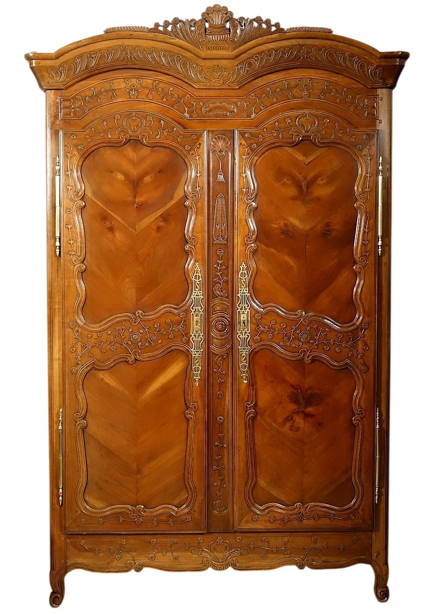 Armoire de mariage rennaise de style Louis XV en merisier richement sculpté.
