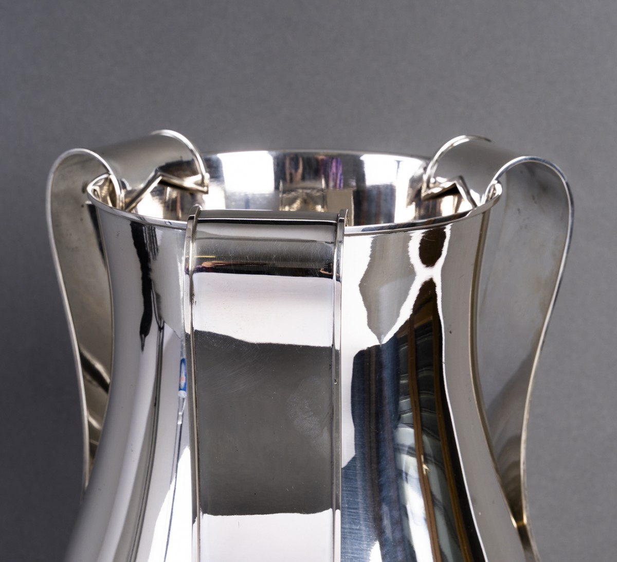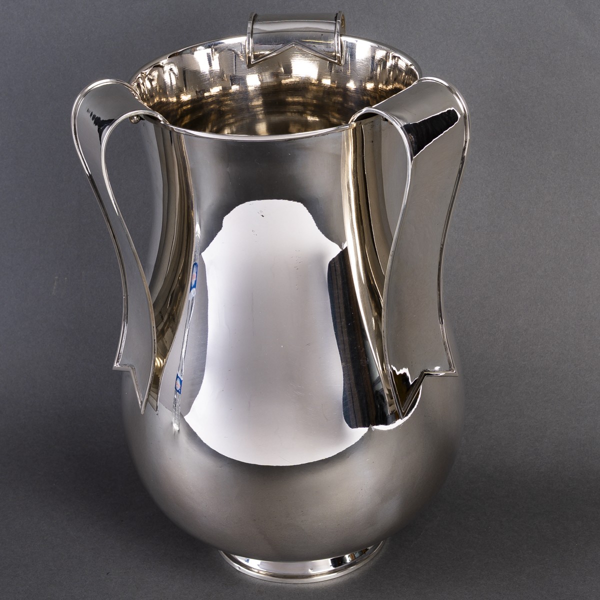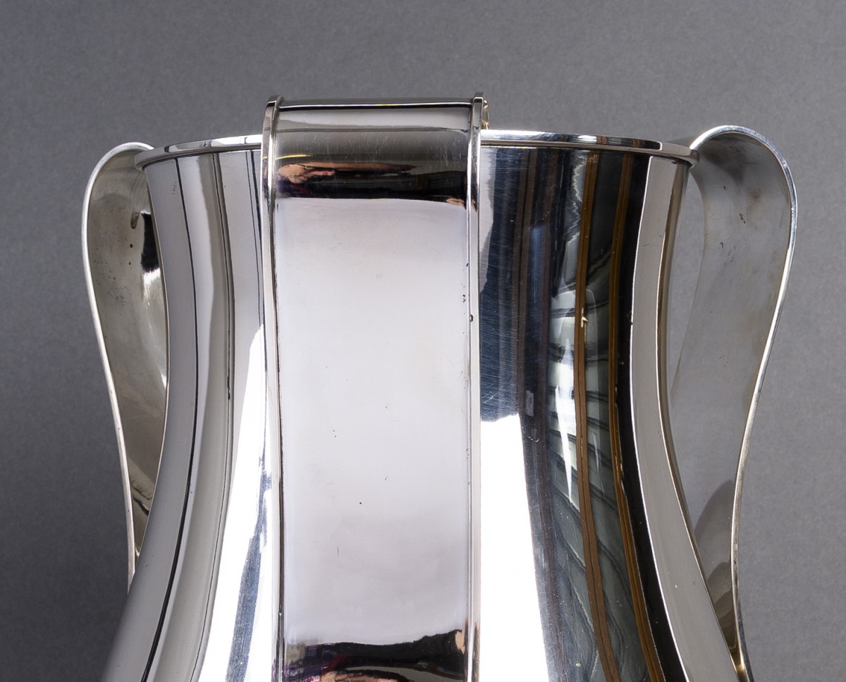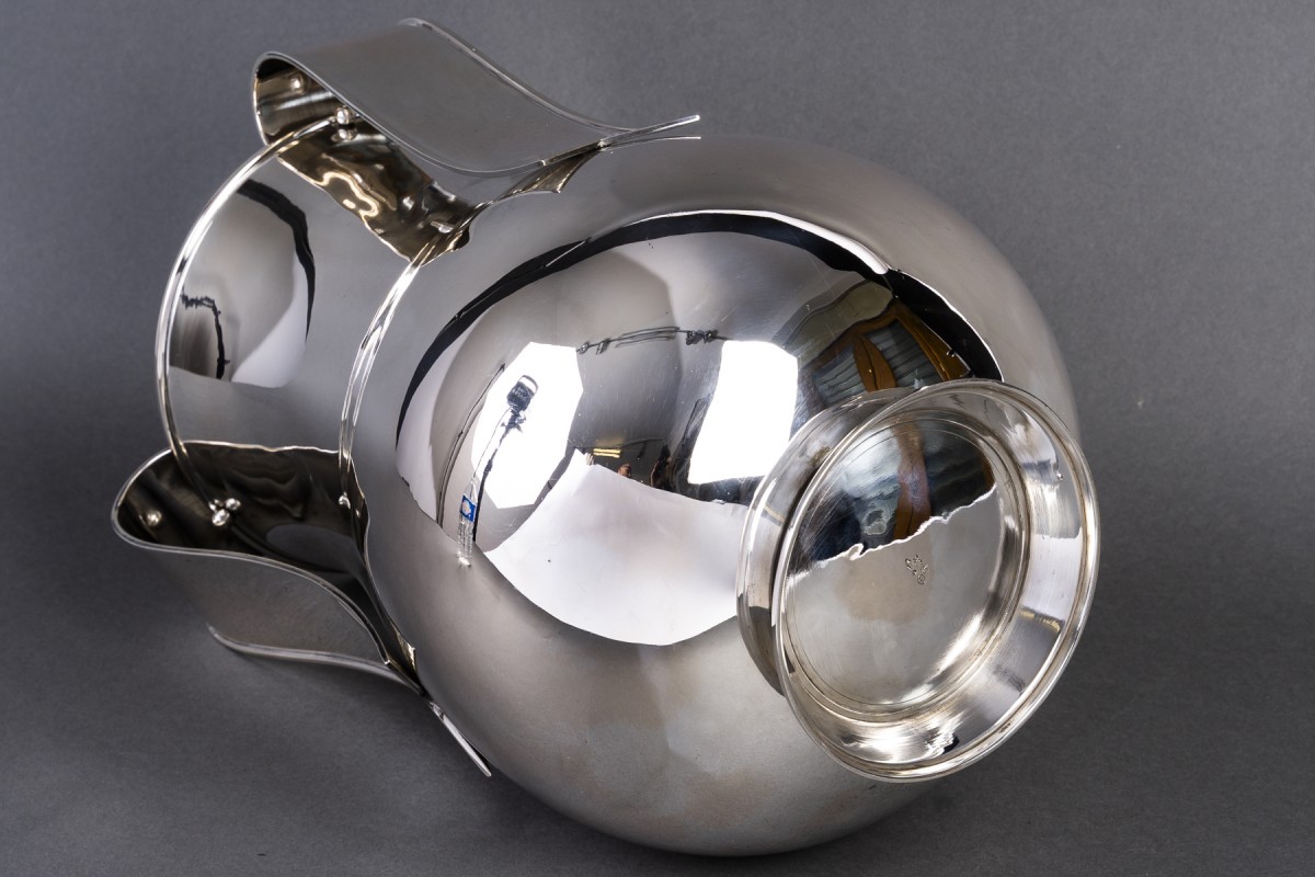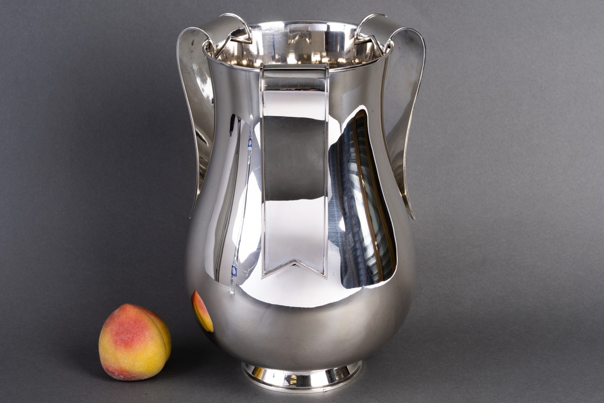 Rare et spectaculaire vase en argent massif, œuvre de Arrigo Finzi, figure majeure du design italien du XXe siècle.