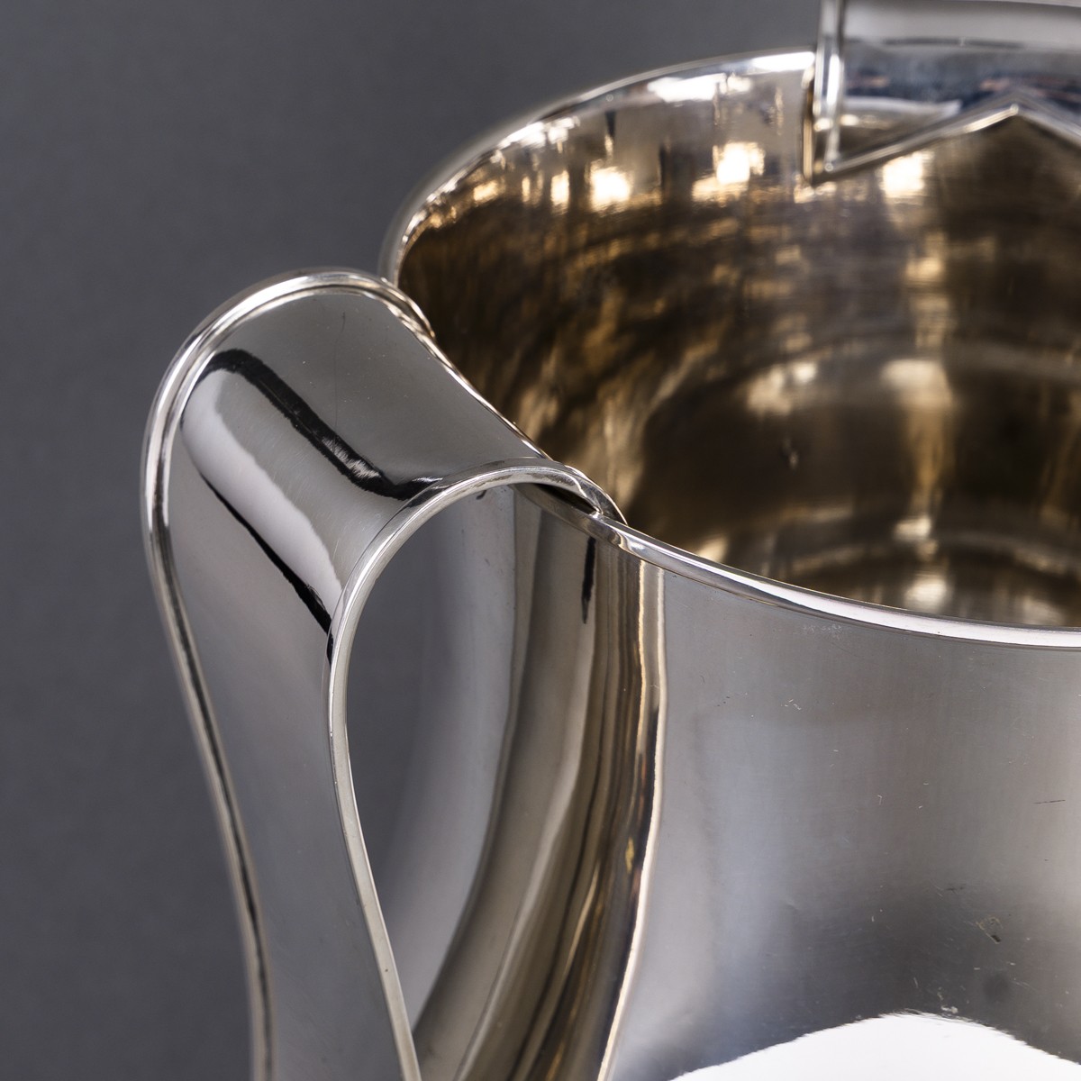 Arrigo Finzi (1890–1973), orfèvre milanais majeur du XXe siècle, fonde sa maison en 1919 et développe une production innovante mêlant tradition italienne, Art Déco et influences futuristes. Collaborateur de l’architecte Antonio Sant’Elia, il crée dès les années 1930 la ligne “Sant’Elia”, caractérisée par des formes géométriques audacieuses. Lauréat du Grand Prix de Bruxelles en 1935 et seul orfèvre italien sélectionné pour l’exposition “Italy at Work” en 1950, il s’impose comme une figure essentielle de l’argenterie moderne.