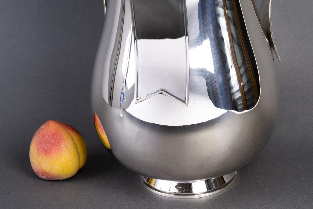 Créé dans les années 1930, ce modèle “Sant’Elia” incarne l’un des moments les plus audacieux de l’orfèvrerie italienne, à la croisée de l’Art Déco et du Futurisme.