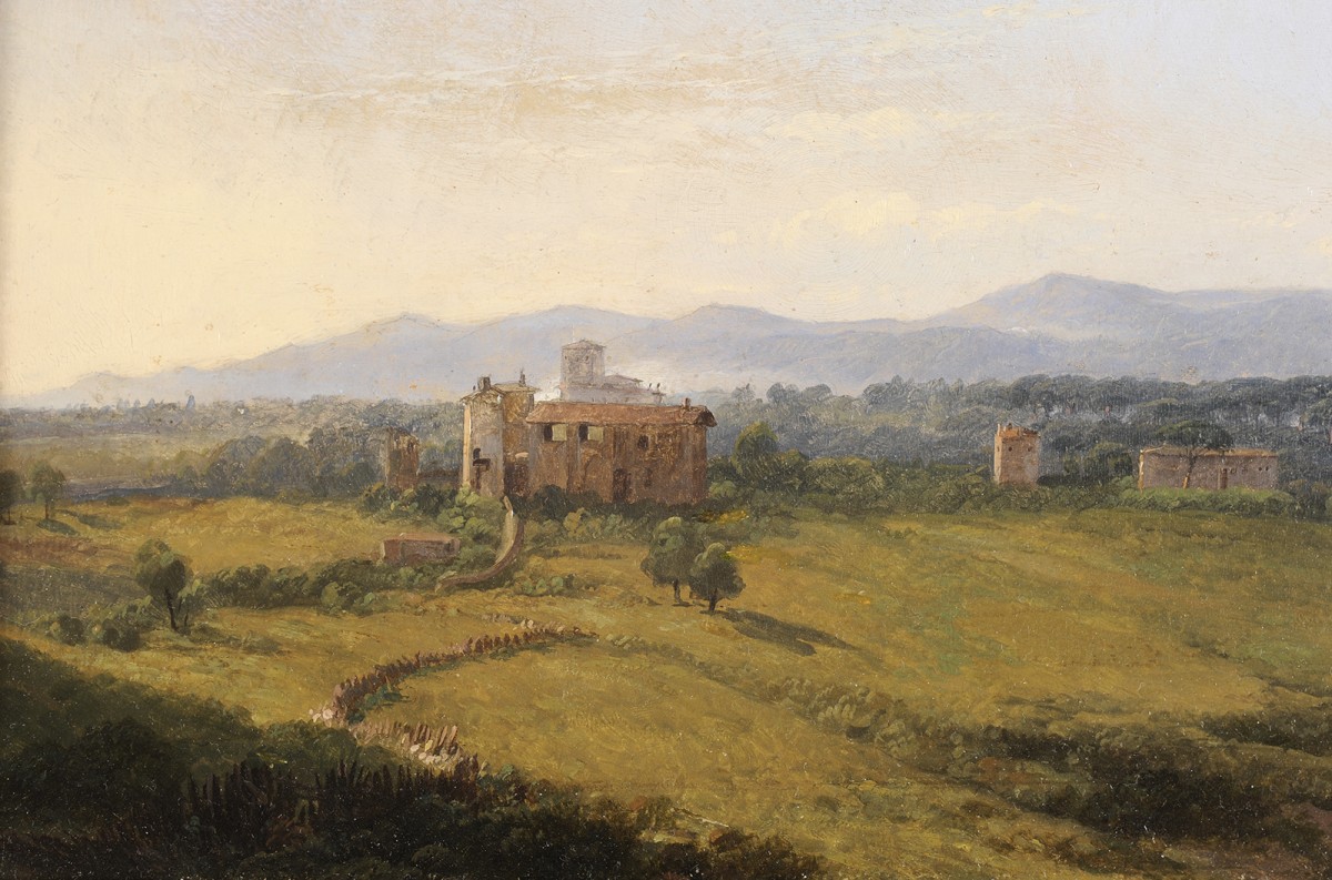 Retrouver le mobilier ou les objets d''art similaires à « Vue depuis la villa Borghese à Rome, attribué à Simon Denis (1755-1813) » présenté par Galerie de Frise, antiquaire à Beleymas dans la catégorie Tableaux XVIIIe siècle Louis XVI, Tableaux et dessins.