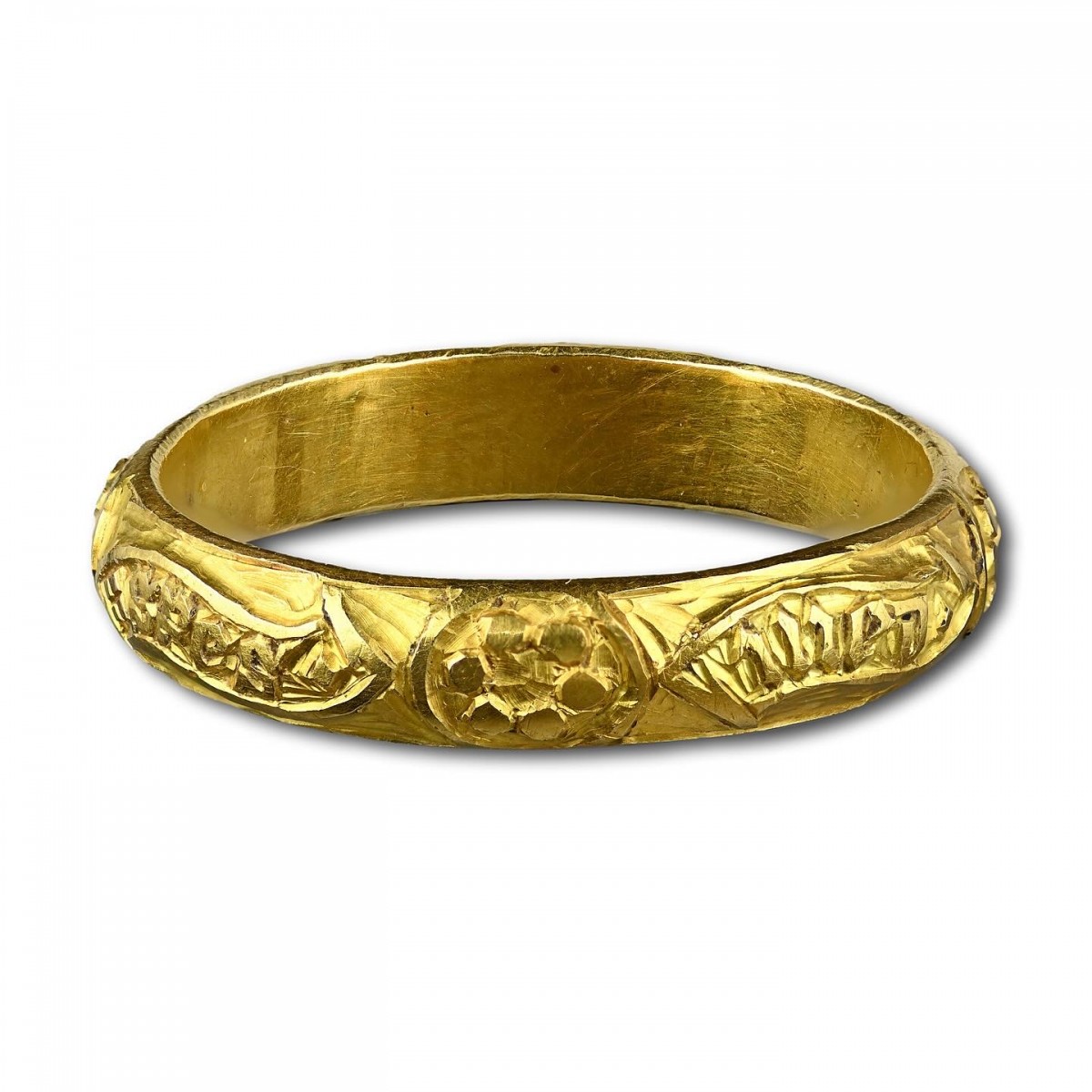 L'inscription est quelque peu difficile à déchiffrer bien qu'elle semble lire « syes / iii ed / iii deo / est », qui se traduit probablement par « Wed to Deo » en référence à la relation du porteur avec Dieu, faisant allusion à leur piété et leur dévotion.