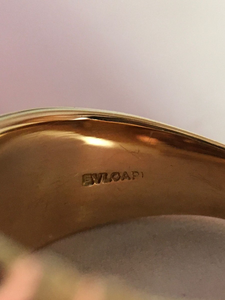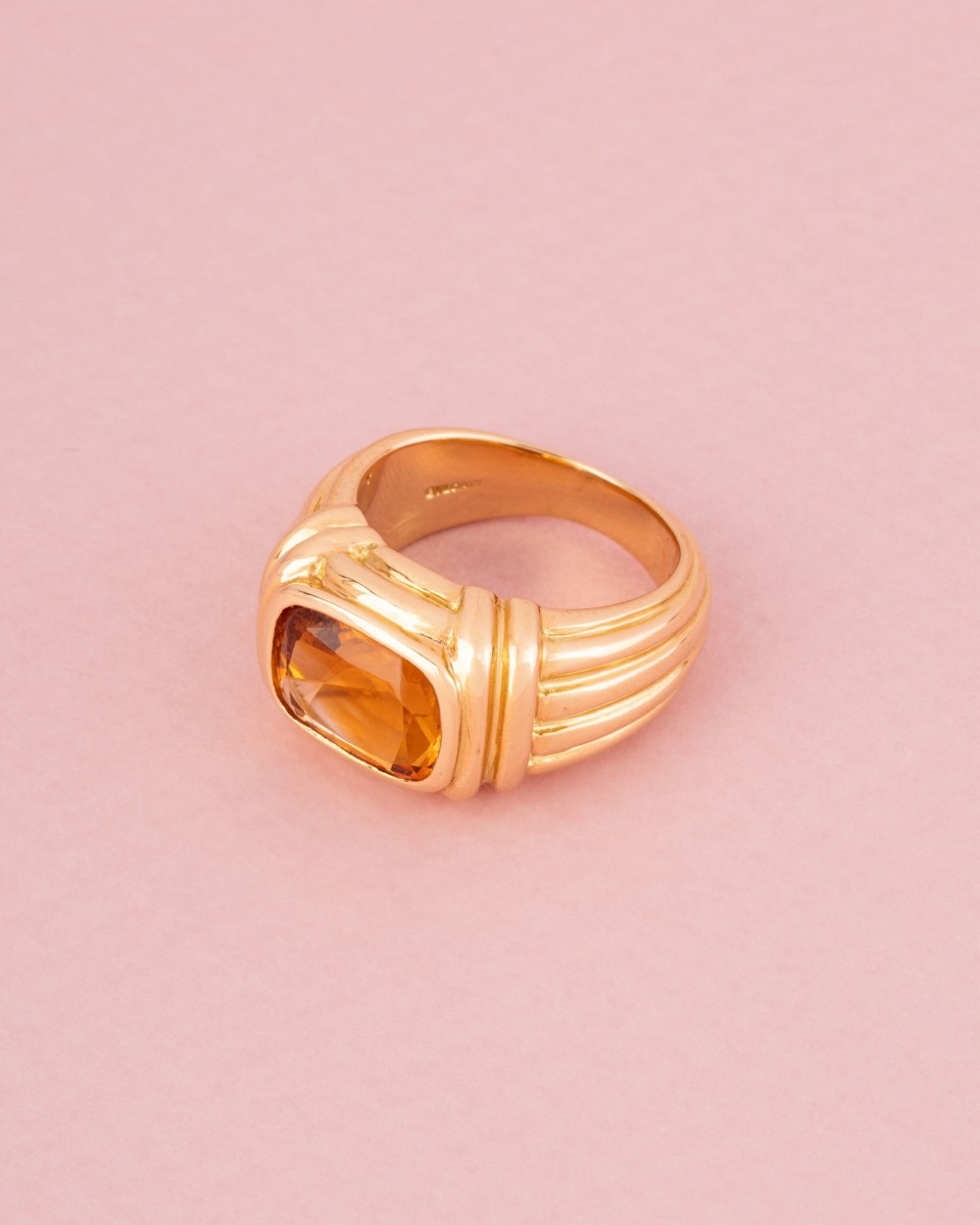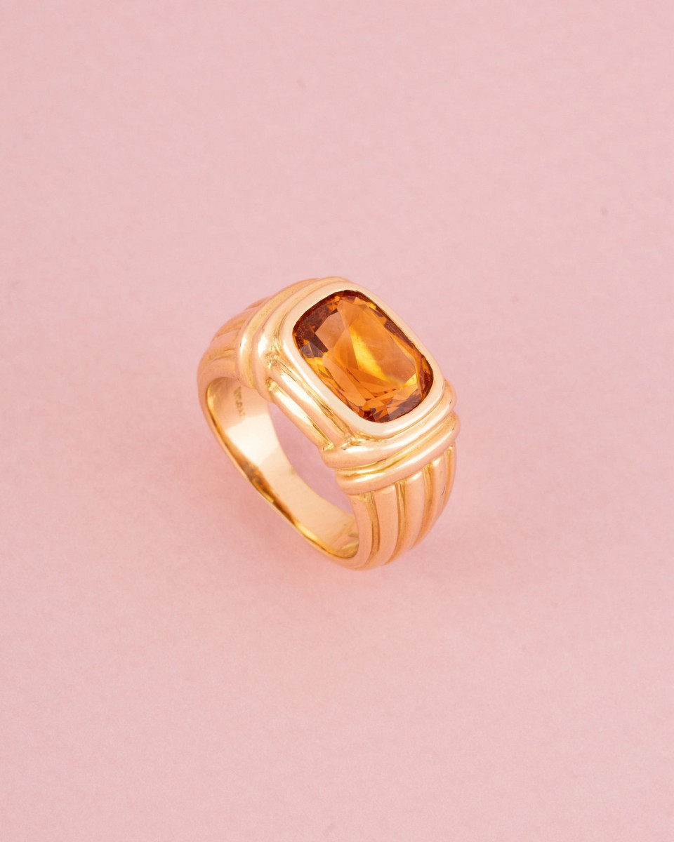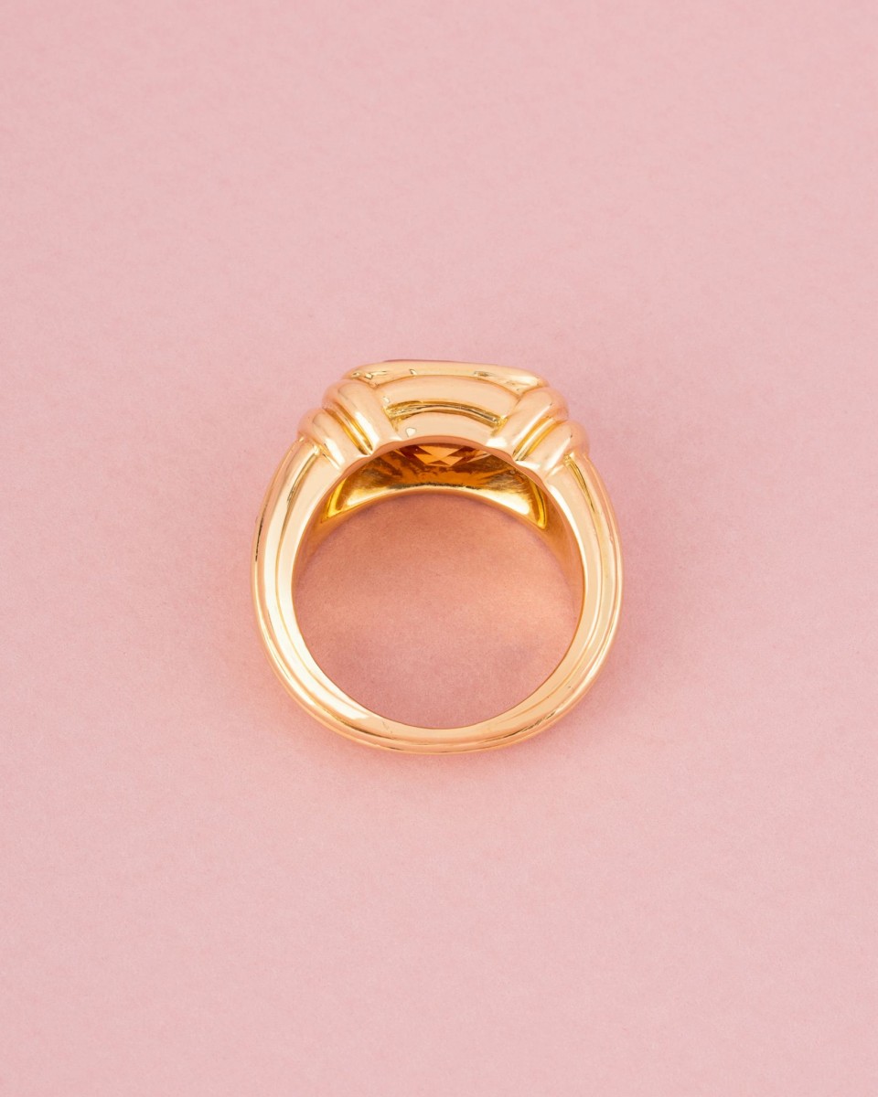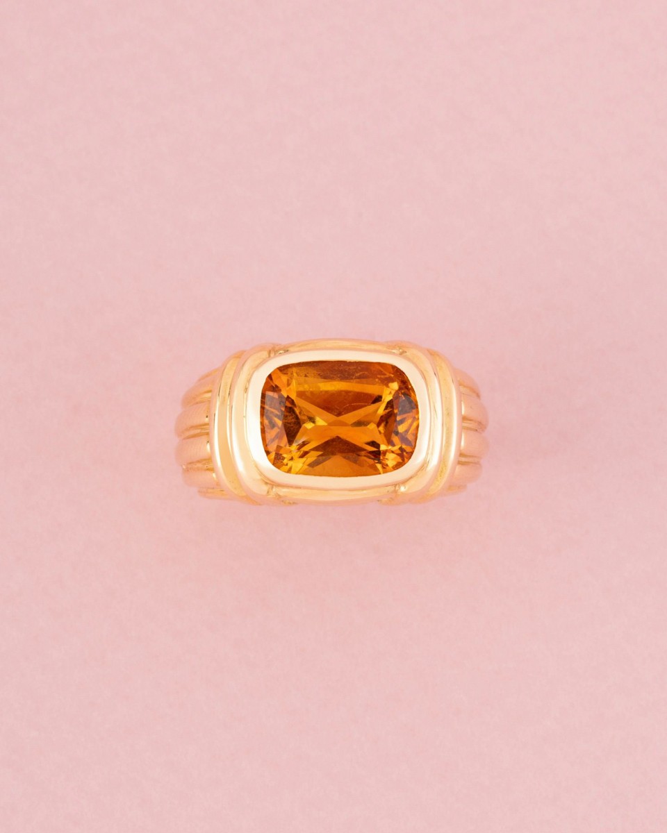 Bague BULGARI en or jaune 18K sertie d’une citrine rectangulaire facettée en serti clos.