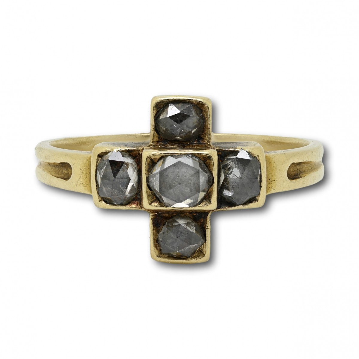 Une bague cruciforme avec cinq diamants taille rose dans le goût de la Renaissance.