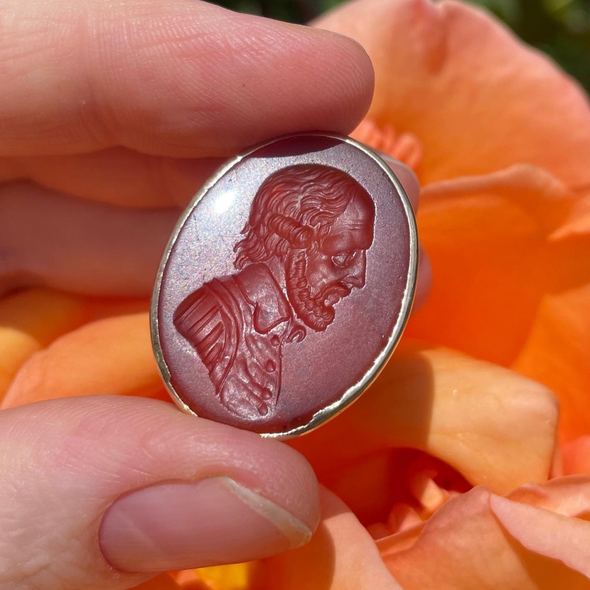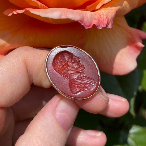 Une bague en or sertie d'une fine intaille en cornaline du dramaturge William Shakespeare.