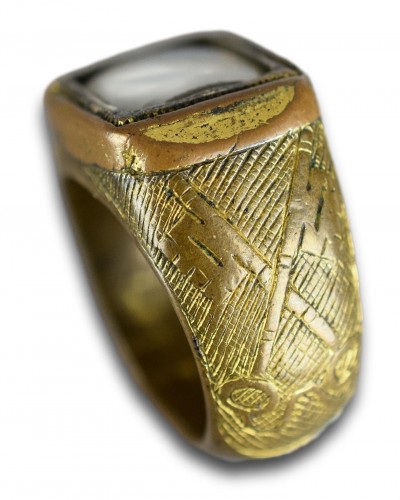 ... utilisés, ce qui ne plairait pas au goût papal pour les pierres précieuses dans des montures somptueuses. Les bagues de ce type datent pour la plupart des XVe et XVIe siècles et sont décorées d'armes papales, de mitres, de clés croisées et d'autres symboles ecclésiastiques. Leur fonction exacte est inconnue, mais il a été suggéré qu'ils étaient portés comme lettres de créance par des courriers à cheval entre les papes et d'autres personnalités de l'Église et souverains. Ils servaient à prouver l'identité du messager mais n'avaient pas une valeur qui tenterait les voleurs.