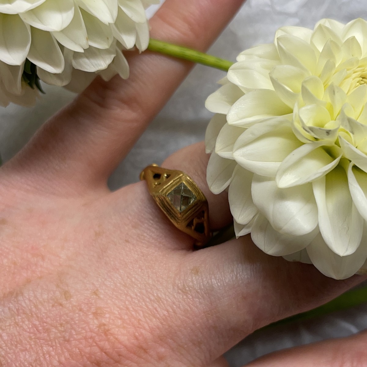 Une bague romaine en or exceptionnellement rare sertie d'un diamant octaédrique naturel.