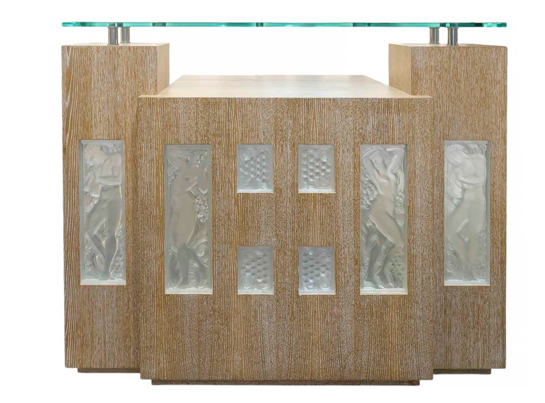 Retrouver le mobilier ou les objets d''art similaires à « Bar d'appartement formé de panneaux décoratifs Lalique et chêne cérusé » présenté par Alexia Say, antiquaire à Saint-Ouen dans la catégorie Buffet Art Déco, Mobilier.