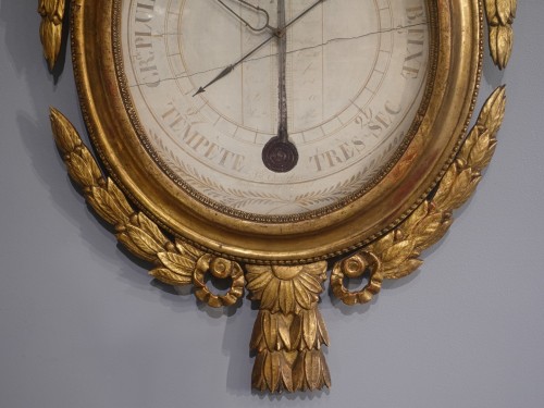 Baromètre thermomètre Louis XVI en bois sculpté et doré d'époque fin XVIII°.