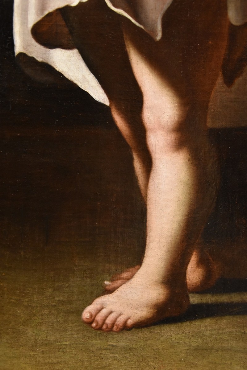... regard vers l'observateur, dans le but d'attirer son attention et de susciter son implication, selon un expédient qui revient fréquemment dans les tableaux de Schedoni.