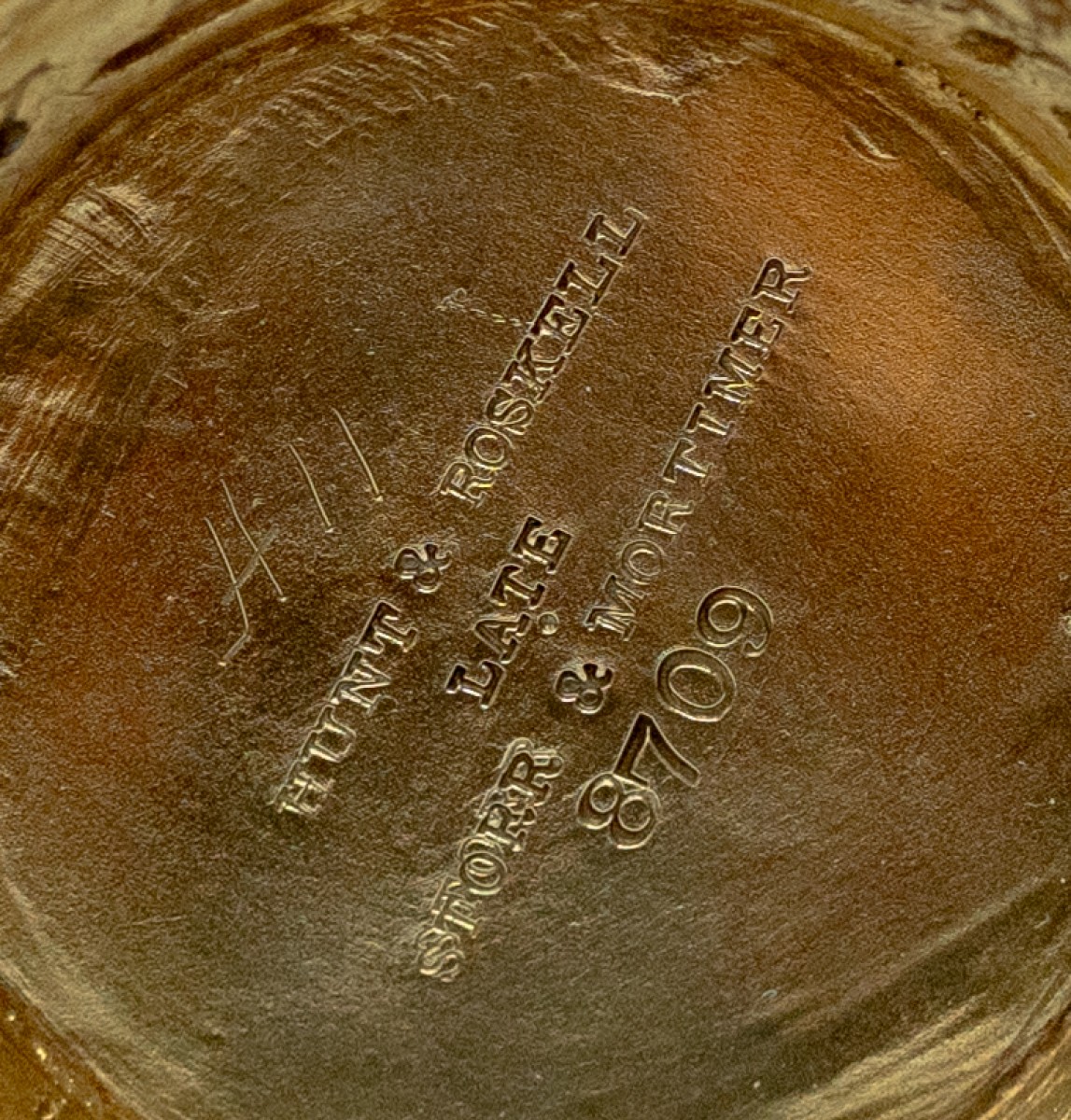 Hunt & Roskell — successeurs directs de l'atelier du grand Paul Storr (1771–1844) par la lignée Storr & Mortimer (1822–1838) ? Mortimer & Hunt (1838–1843) ? Hunt & Roskell (1843–1897) — occupèrent tout au long de l'époque victorienne, aux côtés de Garrard, la première place parmi les fabricants londoniens d'argenterie de présentation à caractère sculptural. Un visiteur contemporain de l'atelier de Harrison Street décrivit la maison comme « occupant le rang le plus élevé de sa catégorie — non seulement pour la beauté de son exécution, mais pour le goût artistique exquis, ainsi que pour le soin consommé et la réflexion dont témoignent ses créations » (Trades and Manufactures of Great Britain, 1865). La maison employa des modeleurs et des dessinateurs de premier ordre, parmi lesquels le ciseleur français Antoine Vechte (1800–1868), créateur du célèbre Titan Vase (Goldsmiths' Company, Londres), présenté à la Grande Exposition de 1851, ainsi que le sculpteur Edward Hodges Baily (1788–1867), élève de John Flaxman. Hunt & Roskell participa à la Grande Exposition (1851), aux Expositions Internationales de Londres de 1862 et 1872, à l'Exposition Universelle de Paris (1867), et à la Health Exhibition de Londres de 1884 — l'année même où cette aiguière fut poinçonnée.